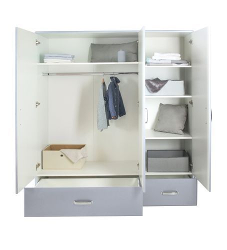 Miami - Kleiderschrank 3türig mit 2 Schubladen, Soft-Close, Metallic Grau