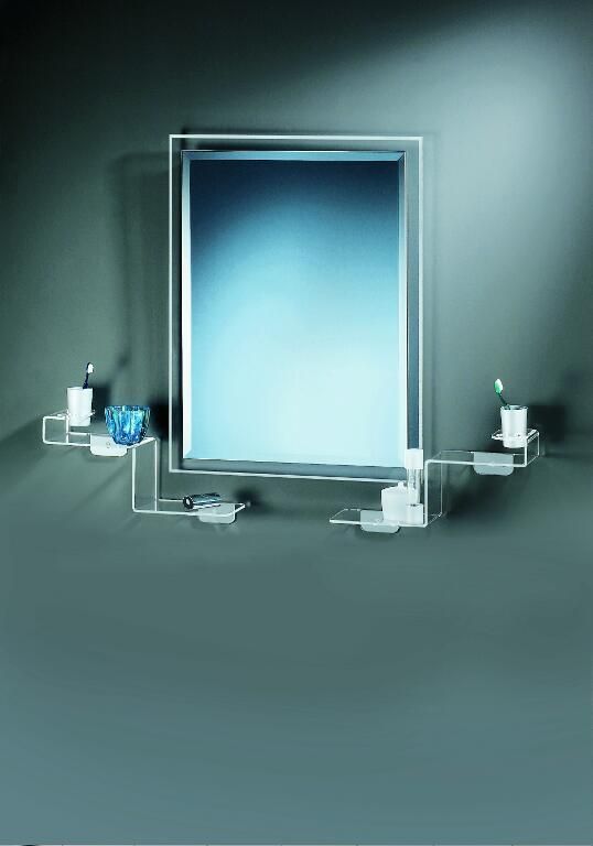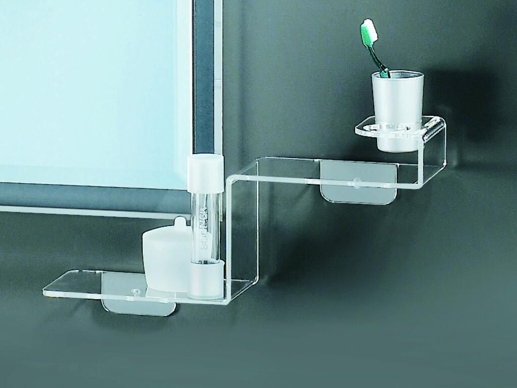 Elegantes Stufenregal für Ihr Bad mit 2 Einlässen für Zahnputzbecher. Durchdachte Wandhalterungen verdecken unschöne Bohrlöcher. Auch andersrum erhältlich.