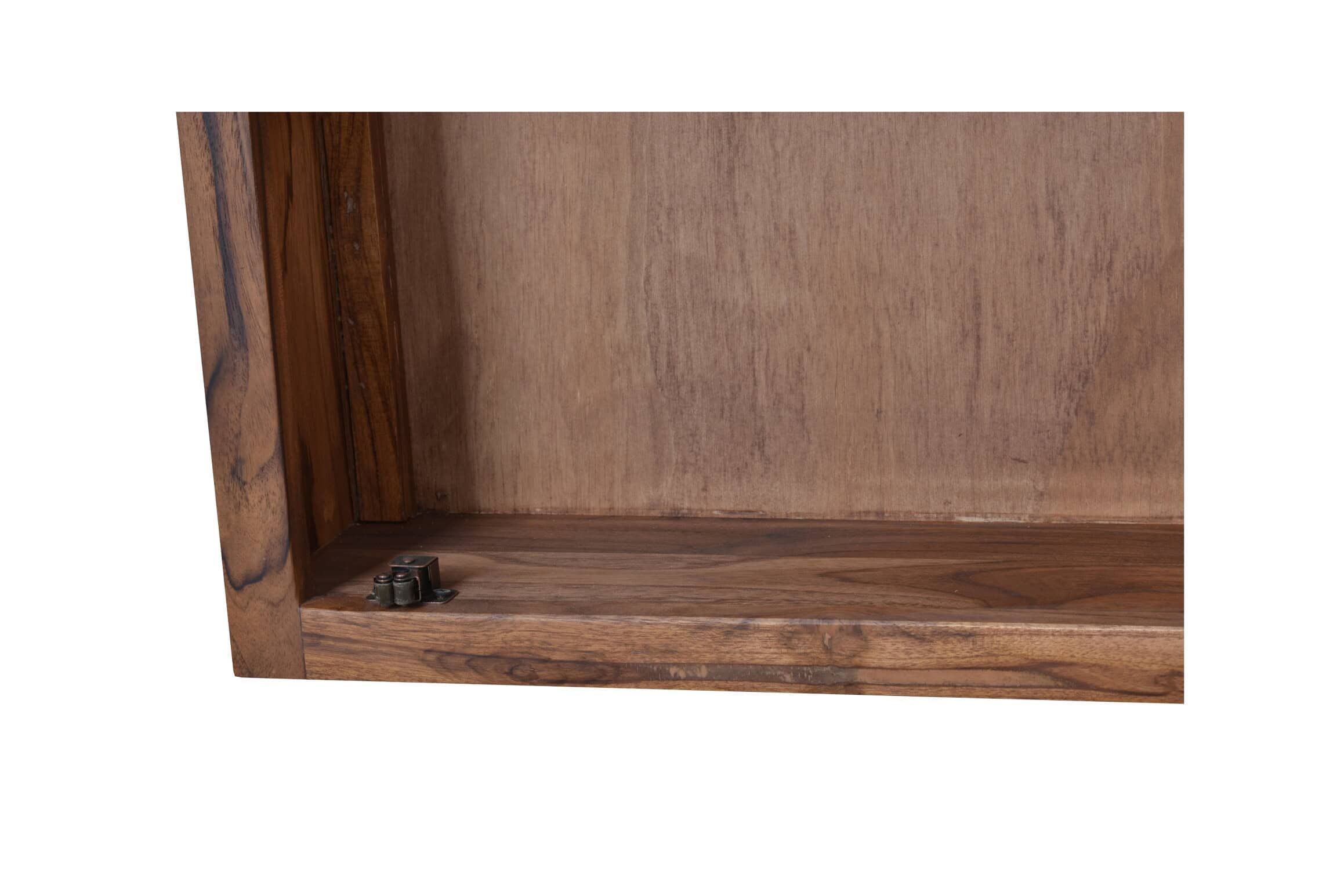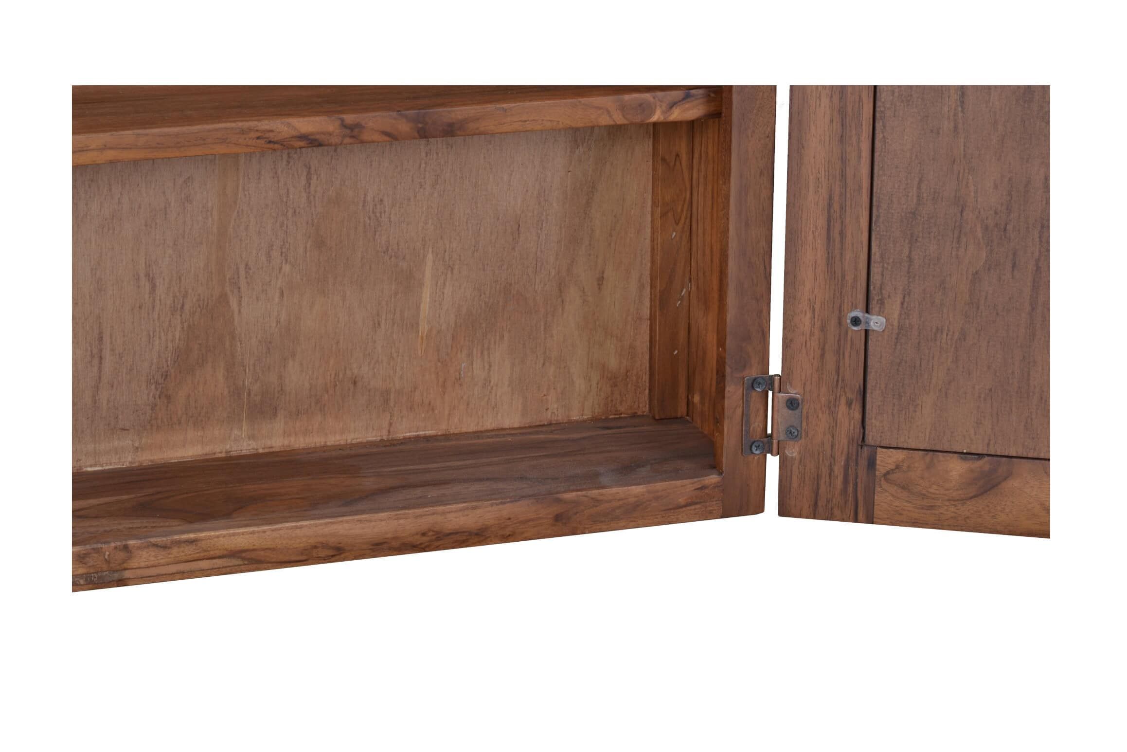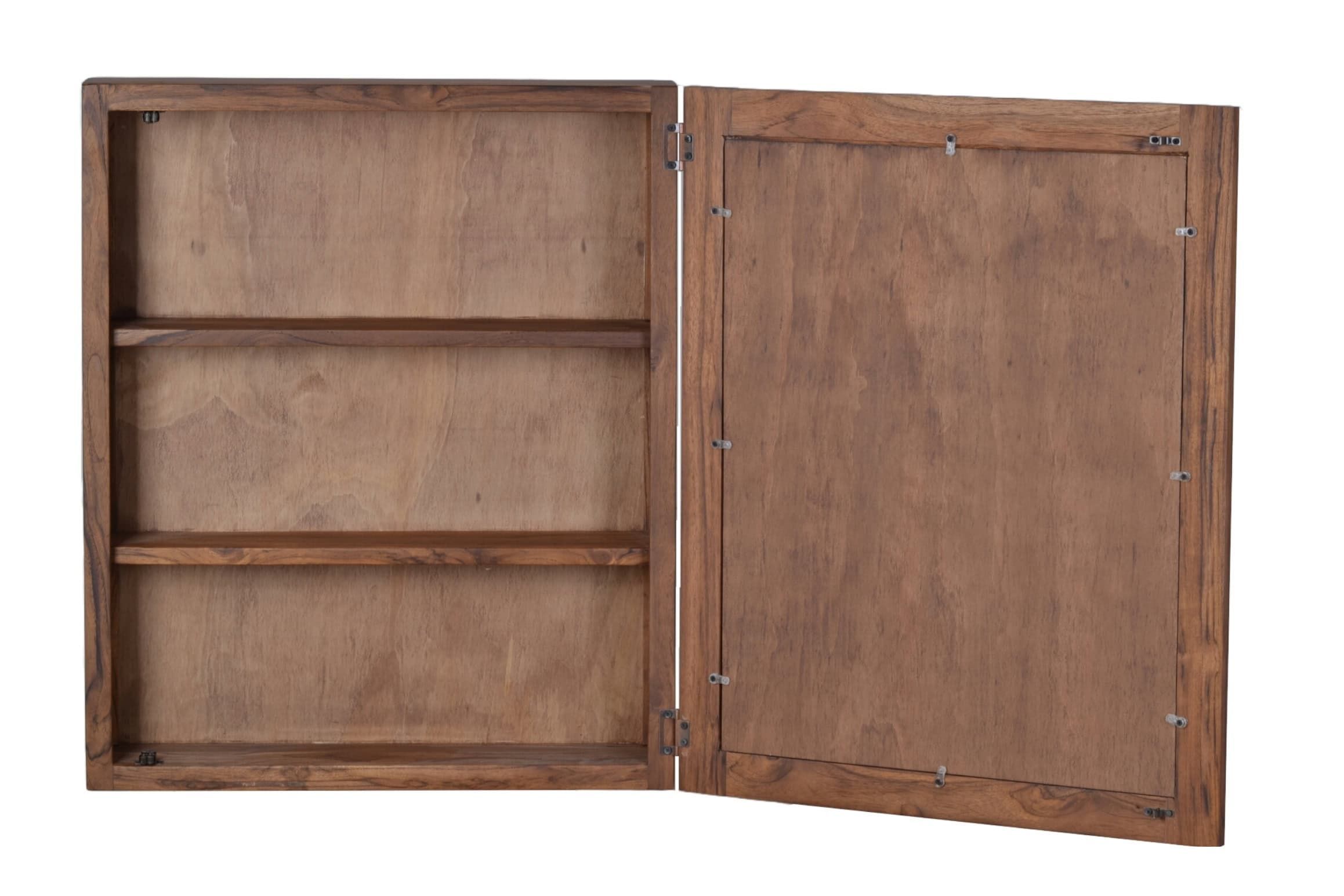 Badezimmer Spiegelschrank aus Teakholz mit zwei Einlegeböden Dieser beeindruckende Spiegelschrank aus Teakholz vereint praktische Aufbewahrungsmöglichkeiten mit einem eleganten Design und wird zum unverzichtbaren Accessoire in Ihrem Badezimmer. Der großzügige Spiegel bietet nicht nur eine klare Reflexion, sondern verleiht Ihrem Badezimmer auch optische Weite und Helligkeit. Im Inneren des Schranks finden Sie zwei Einlegeböden, die ausreichend Platz für Ihre Badutensilien, Kosmetikprodukte