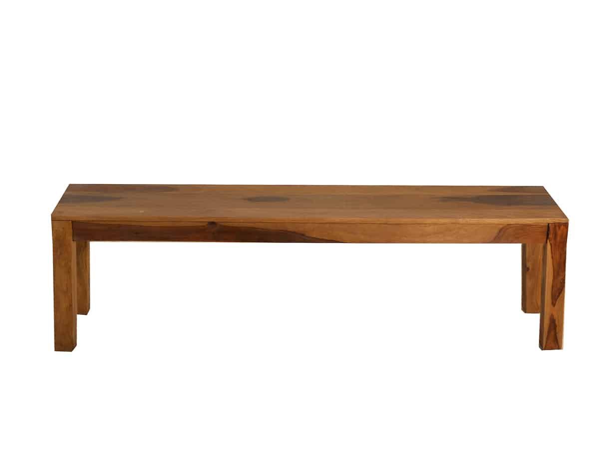 Stilvolle, moderne Teak Bank, passend zum Esstisch Lendra sorgt für ein gemütliches Zusammensitzen. Sitzfläche sowie Bankgestell bestehen aus massivem Teak-Holz. Die auffällige Maserung des Holzes wird besonders auf der Sitzfläche und an den massiven Beinen sichtbar: Der warme hellbraune Grundton des Holzes durchzieht eine dunkelbraune bis schwarzbraunen Zeichnung. Eine Oberflächenversiegelung mit transparentem Lack schützt die Bank bei starker Beanspruchung, vor Flecken und Feuchtigkei