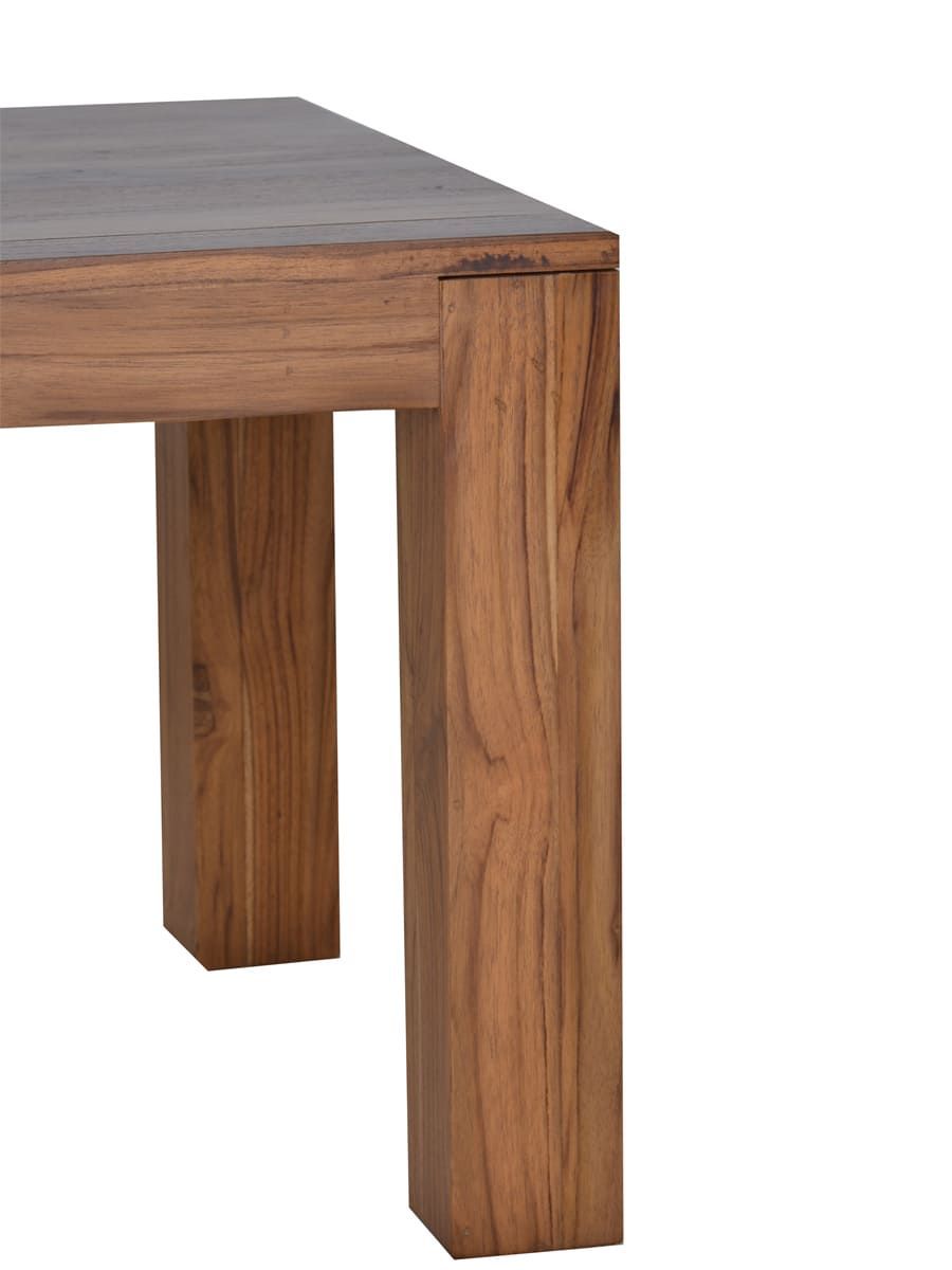 Moderner Couchtisch aus massivem Teakholz, lackiert. Teakholz gehört seit Jahren zu den beliebtesten Hölzern im modernen Möbelbau. Das robuste Holz wird von einer eleganten Zeichnung durchzogen. Bagra kann sowohl mit anderen Teakmöbeln kombiniert als auch als Solitärmöbel in Szene gesetzt werden. Der Tisch wurde überwiegend in Handarbeit gefertigt, leichte Unebenheiten oder Abweichungen von 1-2 cm sind daher keine Qualitätmängel, sondern Zeugnis landestypischen Handwerks. Da es si