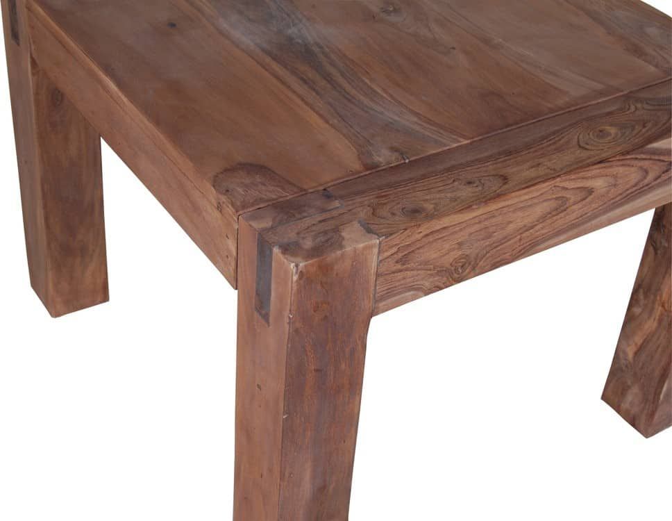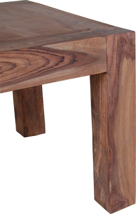 Moderner Couchtisch aus massivem Sheeshamholz, lackiert. Sheesham gehört zu den derzeit beliebtesten Hölzern und wird besonders wegen seiner auffälligen Maserung geschätzt. Das robuste Holz durchzieht eine lebhafte Zeichnung, deren Farbnuancen ein Spektrum von Hellgelb bis Schwarzbraun umfassen können. Diese Eigenschaft ergibt einen wunderschönen Kontrast zu der sonst sehr schlichten und zeitlosen Form dieses Tisches, der sich sowohl mit weiteren Sheeshammöbeln kombinieren lässt als auch als