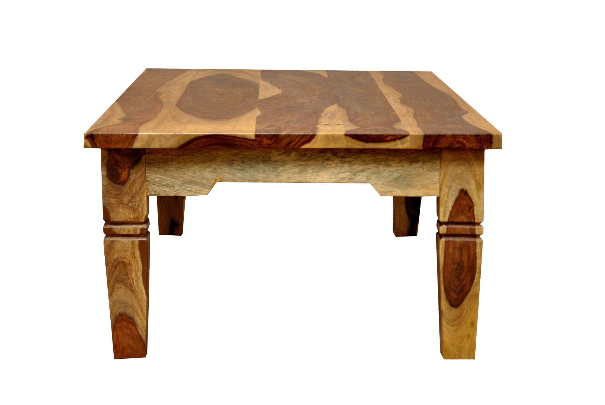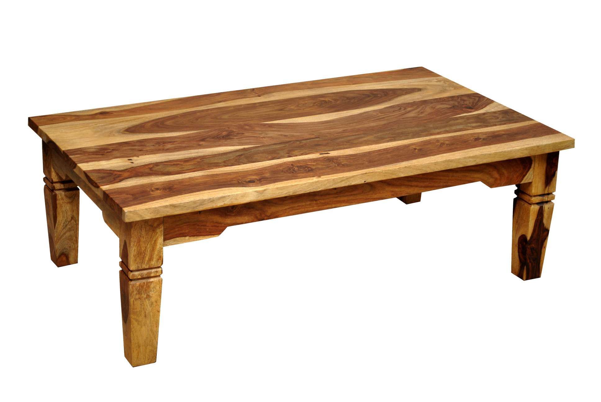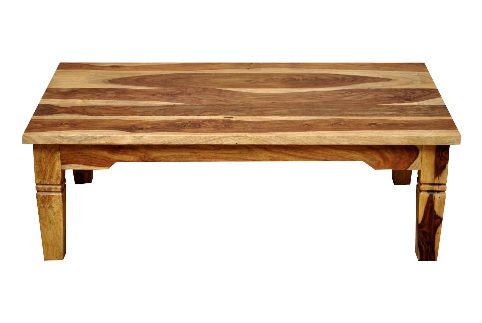 Der Couchtisch aus Massivholz ist im modernen Landhausstil gehalten und überzeugt mit einer schönen, kontrastreichen Maserung auf der Oberfläche. Die ansprechende Maserung des Sheeshamholzes verleiht dem Couchtisch eine natürliche Note. Die lackierte Oberfläche wirkt zudem edel und ist zugleich pflegeleicht. Die gedrechselten Tischbeine bilden einen schönen Kontrast zum Gesamtbild. Der stilvolle Couchtisch lässt sich gut in bestehende Wohnbereiche integrieren.