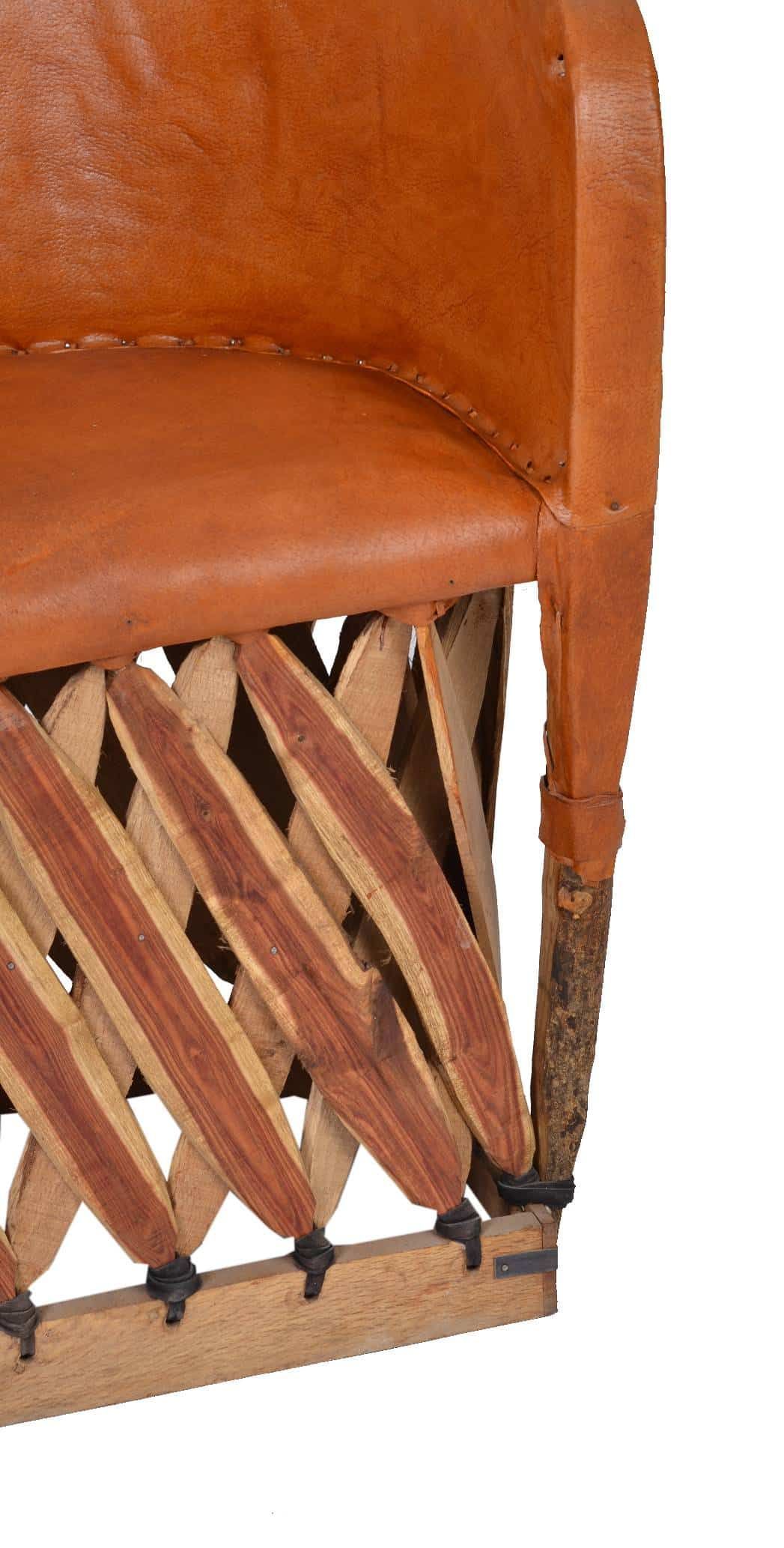 Wunderschöner Mexico Sessel, wobei Sitz und Rücken mit echtem Schweinsleder überzogen sind.