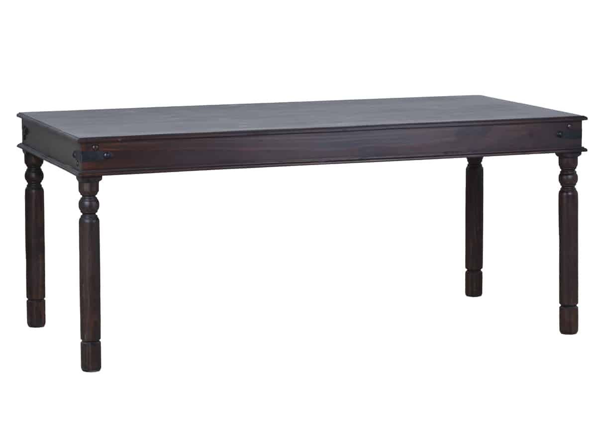 Kolonialstil Esstisch aus massivem Pinienholz, dunkel lackiert Dieser Esstisch ist ein wahrer Blickfang für jeden Raum. Im Kolonialstil lackiert, präsentiert er sich in einem warmen Walnusston, der die natürliche Maserung des Holzes perfekt betont. Die silhouettenhafte Durchsicht der Maserung, je nach Lichteinfall, schafft ein atemberaubend schönes Gesamtbild und verleiht jedem Tisch eine individuelle Note. Die kunstvoll gedrechselten Beine verleihen diesem Esstisch eine kraftvolle und cha