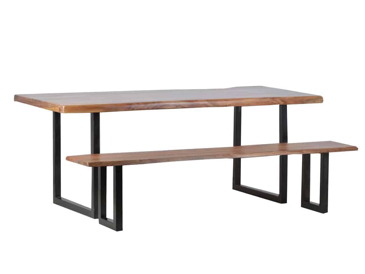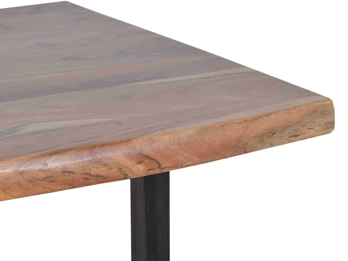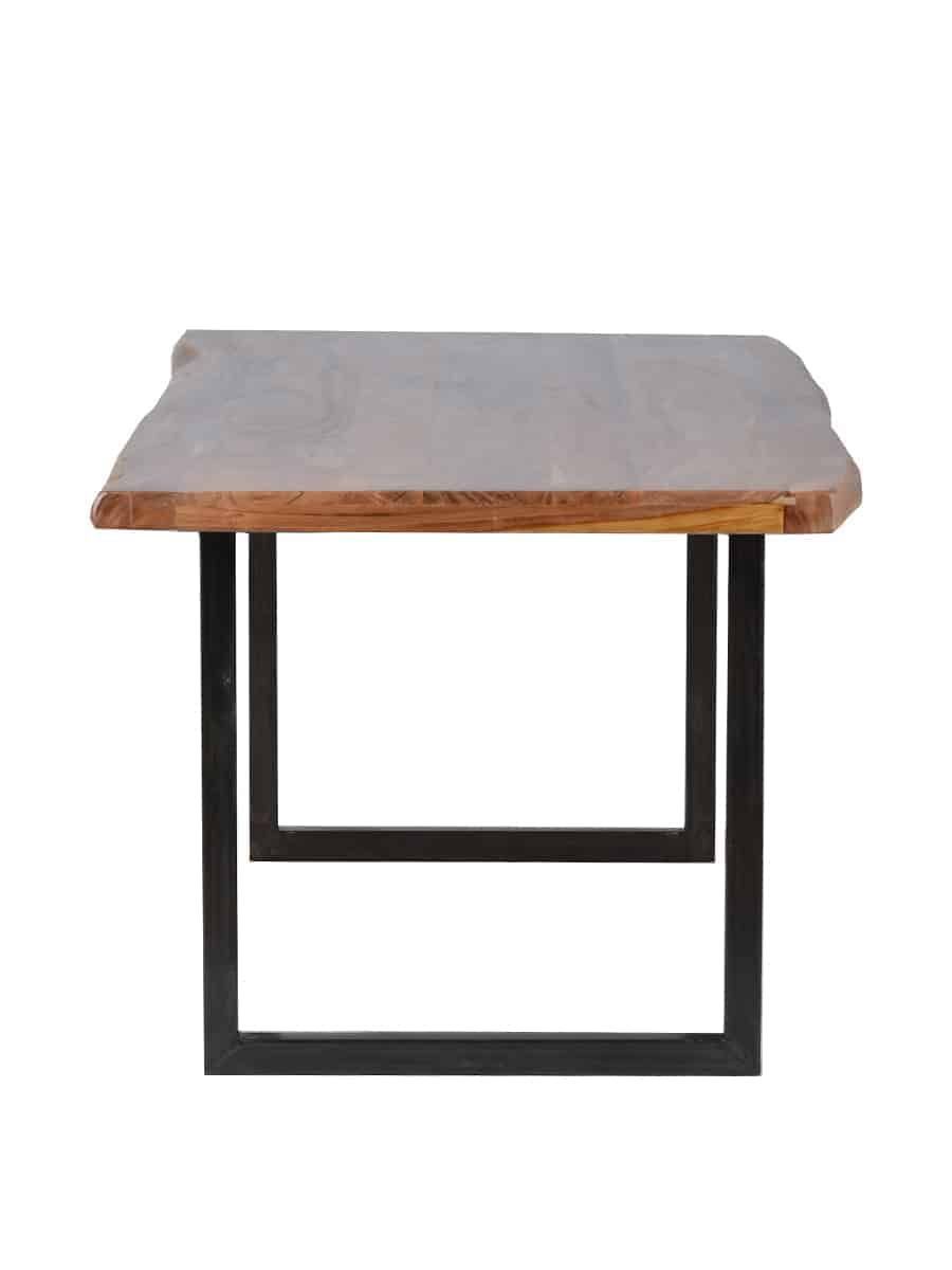 Wunderschöner Baumkantentisch aus massiver Teak und Eisenkufen. Dieser Tisch ist ein wahrer Blickfang und etwas ganz Besonderes. Wer auf der Suche nach einem natürlichen und authentischen Möbelstück ist, wird den Esstisch ‚Vanaja’ lieben. Die Tischplatte aus massivem Teakholz wurde nur wenig bearbeitet und zeigt daher die vollkommene Natürlichkeit des ursprünglichen Baumwuchses, für die Baumkantentische bekannt sind. Markante Maserungen, Astlöcher und kleine Farbunebenheiten sind daher ge