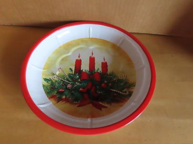Weihnachtsteller Blechteller Keksteller mit 3 Kerzen im Gesteck