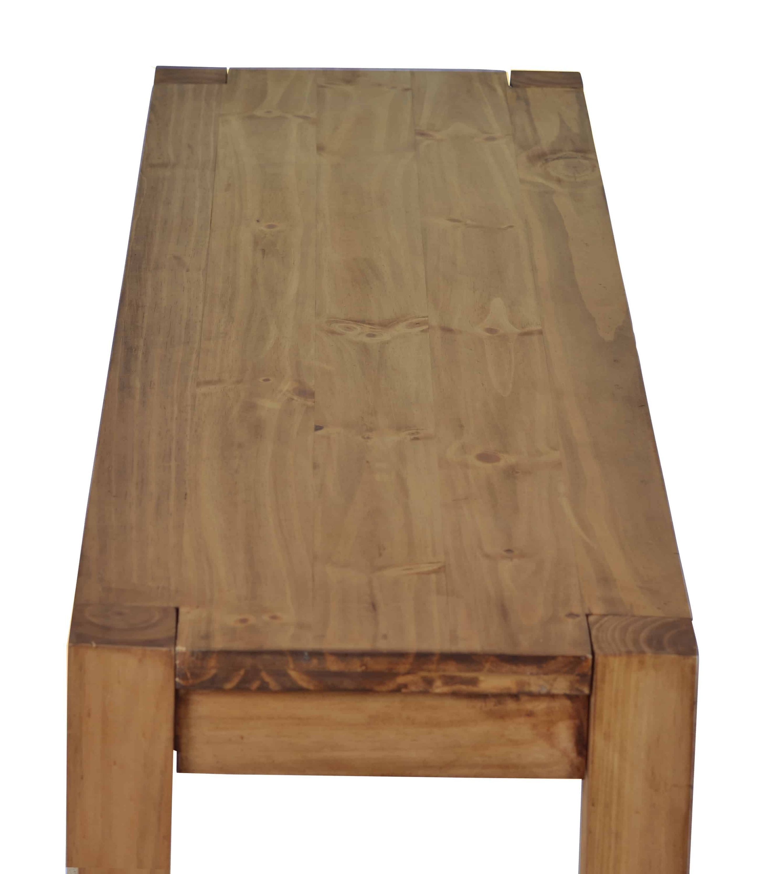 Sitzbank aus massivem Pinienholz, gewachst. Diese wunderschöne und stabile Sitzbank lässt sich dank ihres schlichten Designs zu nahezu allen Stilen kombinieren. Gearbeitet wurde die Bank aus massivem Pininenholz, welches im Anschluss mit Antikwachs versiegelt wurde. Wie alle unsere Mexico Möbel wurde auch diese Bank überwiegend in traditioneller Handarbeit gefertigt, Sie erhalten also ein echtes Unikat und Handwerksstück. Da es sich bei Holz um ein Naturprodukt handelt, könne leic