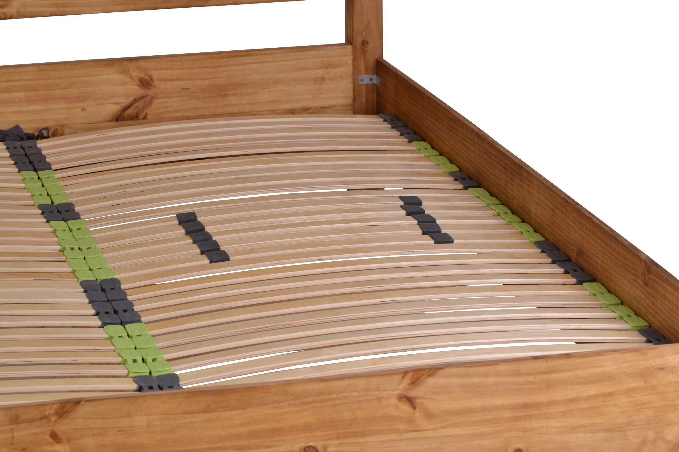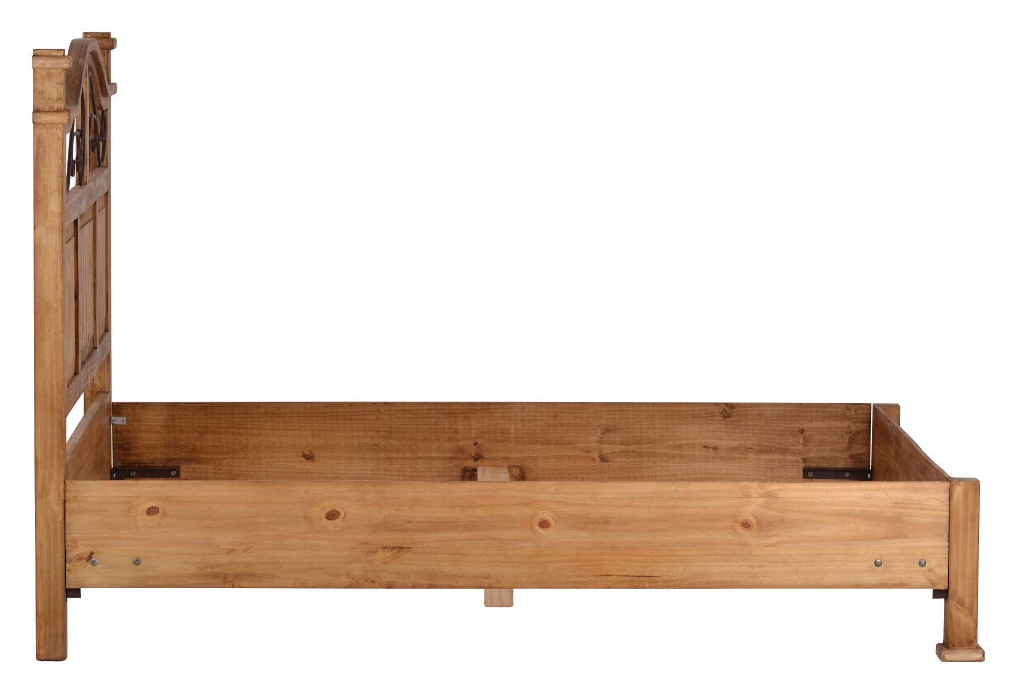 Landhausbett aus massiver Pinie, gewachst. Dieses wunderschöne Landhaussbett beschert Ihnen einen gemütlichen Schlaf. Der stabile Rahmen des Bettes steht auf vier Vierkantfüßen, die im vorderen Bereich mit einer etwas breiteren Basis versehen wurden und den Rahmen ca. 18 cm vom Boden abheben. Das Kopfteil mit einer Höhe von 140 cm ist der Blickfang dieses romantischen Landhausbettes. Hier wurde der untere Teil in Kassettenoptik gearbeitet,darüber befindet sich ein durchbrochener und ges