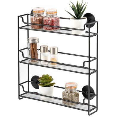 bremermann Gewürzregal zur Wandmontage, 3 Ebenen, schwarz, Kleben oder Bohren