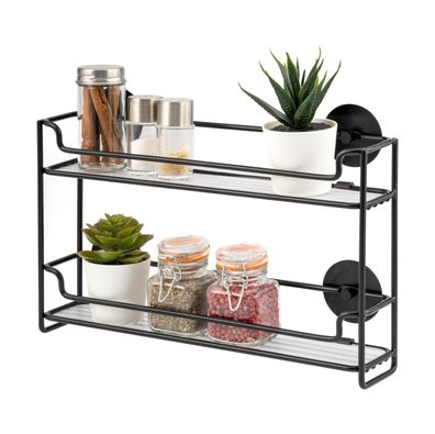 bremermann Gewürzregal zur Wandmontage, 2 Ebenen, schwarz, Kleben oder Bohren