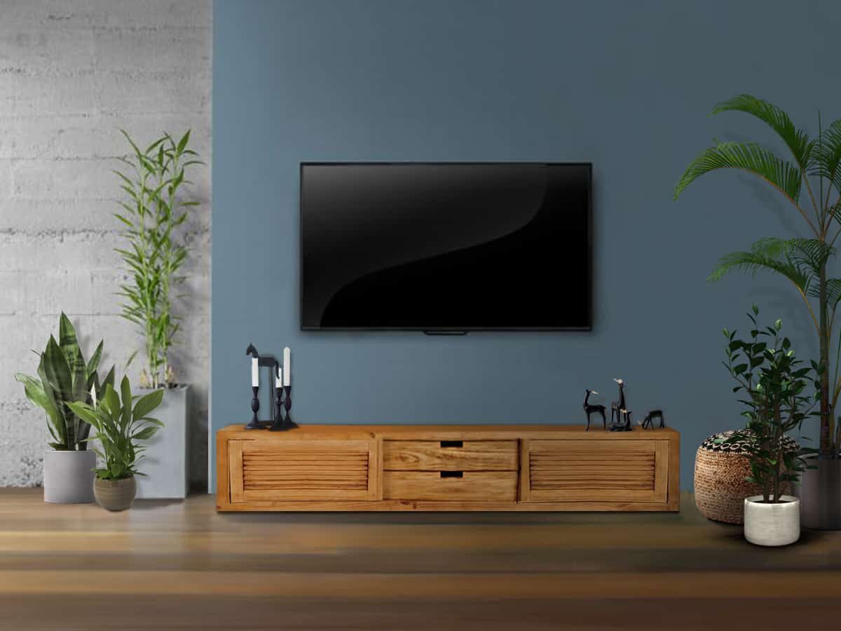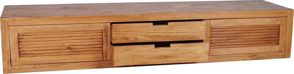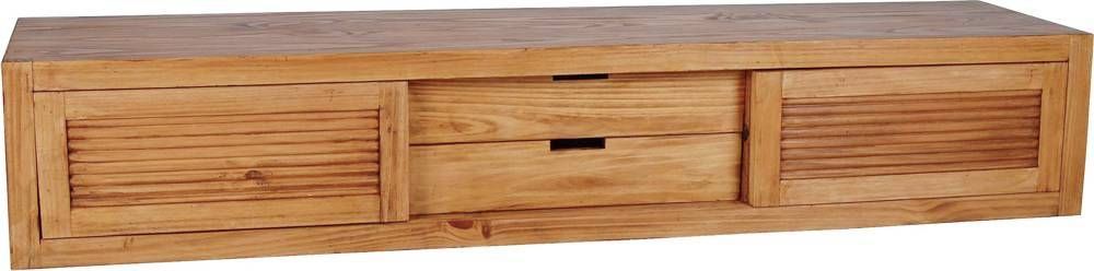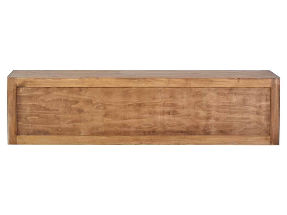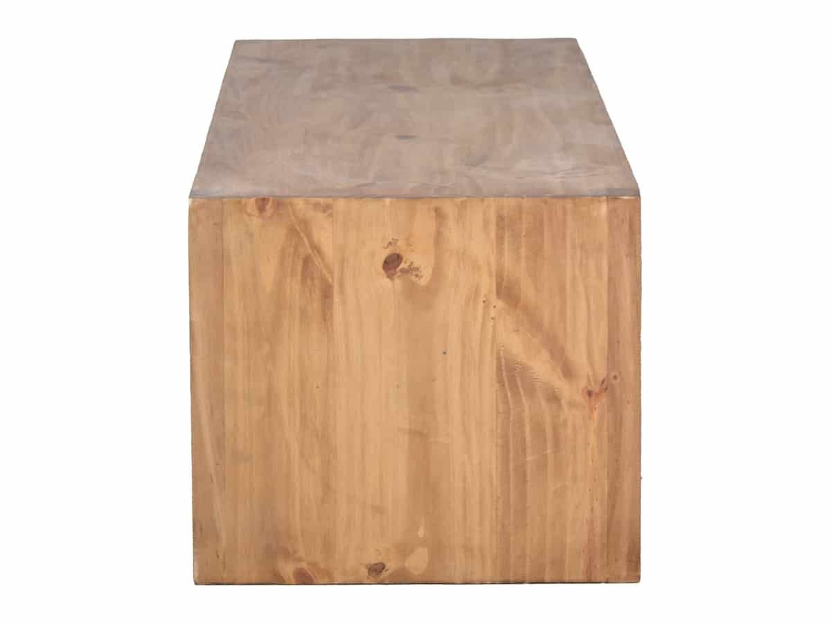Massives Lowboard, TV-Board mit zwei Schubladen und zwei Fächern. Das Lowboard in modernem Design wurde aus massivem Pinienholz gefertigt und mit Antikwachs behandelt. Zwei Schubladen und 2 geräumige Fächer mit Schiebetüren bieten viel Stauraum. Hier lassen beispielsweise Abspielgeräte wie DVD-Player oder Spielkonsolen unsichtbar verstauen und werden dabei vor Staub geschützt. Wie alle unsere Mexico-Möbel, wurde auch dieses Lowboard überwiegend in Handarbeit hergestellt. Leichte Abwei