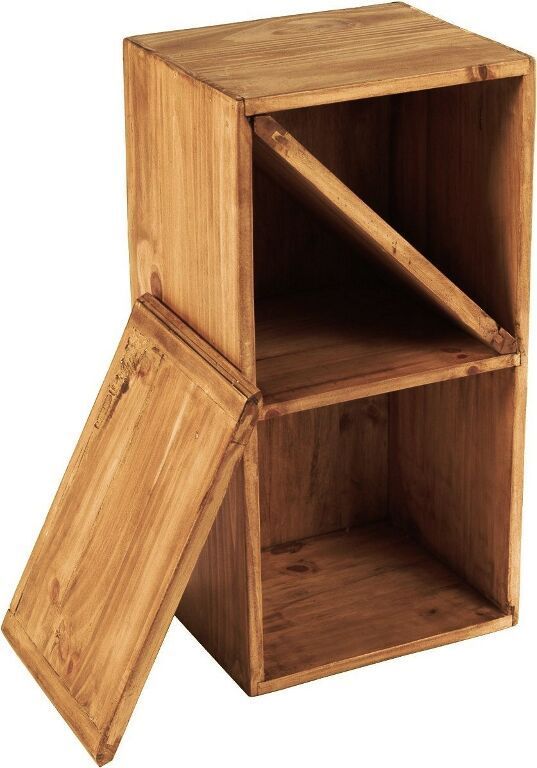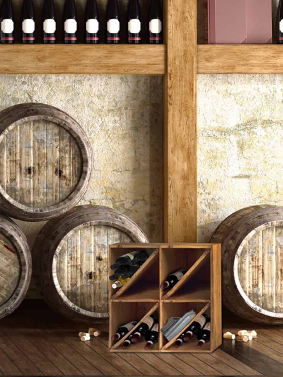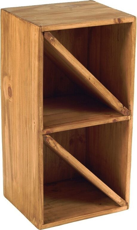 Massives Weinregal mit 2 schrägen Einlegeböden. Hier ist Platz für mehrere Weinflaschen.