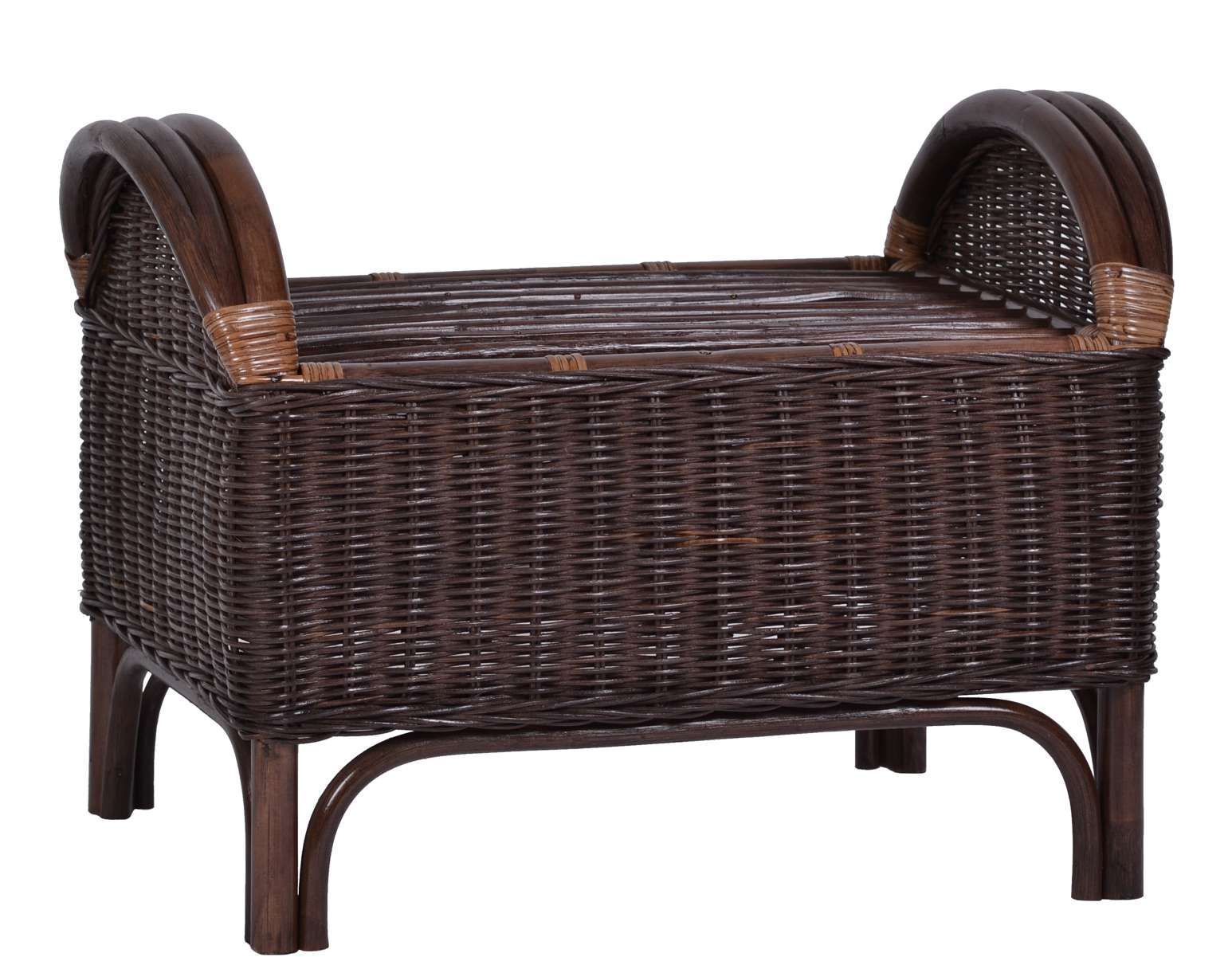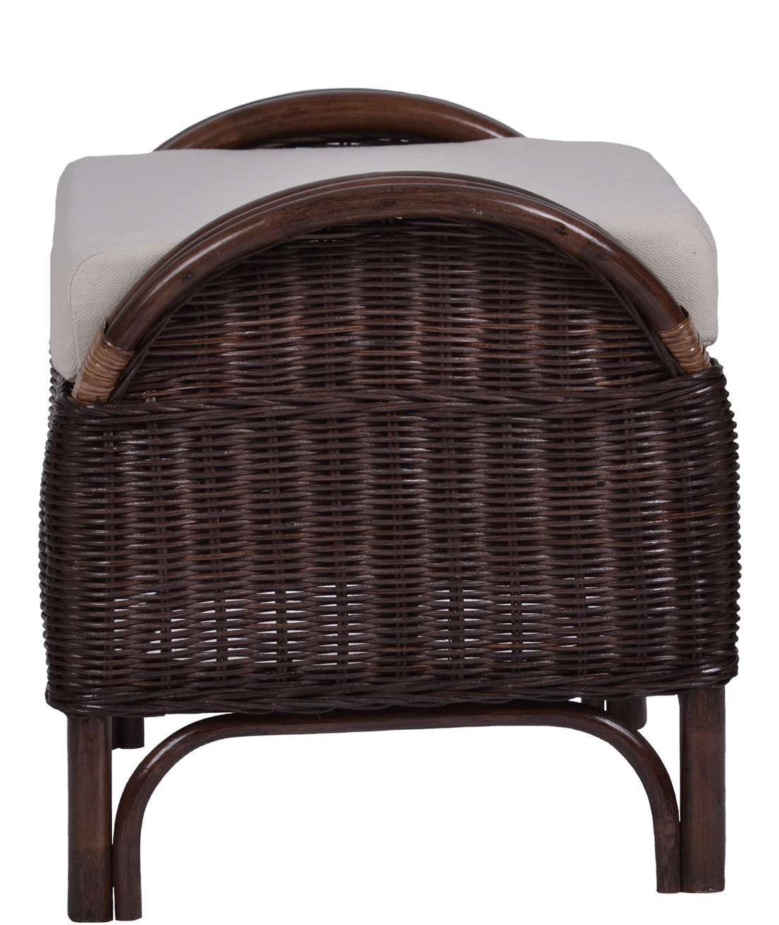 Rattanhocker 'Panama' in Dunkelbraun inklusive Sitzkissen. 'Panama' ist ein vielseitiger und praktischer Hocker. In Kombination mit dem passenden Rattansessel der Serie bietet er die Möglichkeit bequem die Füße hochzulegen, auch vor dem Sofa kann man diese Funktion nutzen. Die kompakte Größe von 65 x 46 x 46 cm macht es möglich, den Rattanhocker als Sitzbank auch in kleinen Fluren und Eingangsbereichen einzusetzen. Der Hocker wurde aus hochwertigem Ratan auf ein stabiles Peddigrohrges