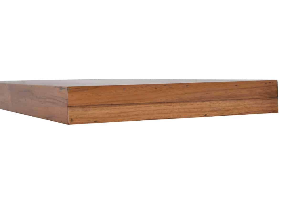 Modernes Wandregal/Wandboard aus massivem Teakholz mit verdeckter Aufhängung. Dieses Wandregal aus unserer Serie 'Mumba' überzeugt vor allem durch seine schlichte aber elegante Form. Die besonders schöne Farbe und Maserung des Teakholzes macht das Regal zu einem stilvollen Hingucker, der sich in jedem Raum Ihres Zuhauses sehen lassen kann. Verwenden Sie das Regal als Bilderleiste über dem Bett oder Sofa, präsentieren Sie darauf Ihre edelsten Gewürze in der Küche oder Ihre Lieblingsbücher