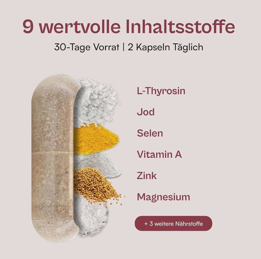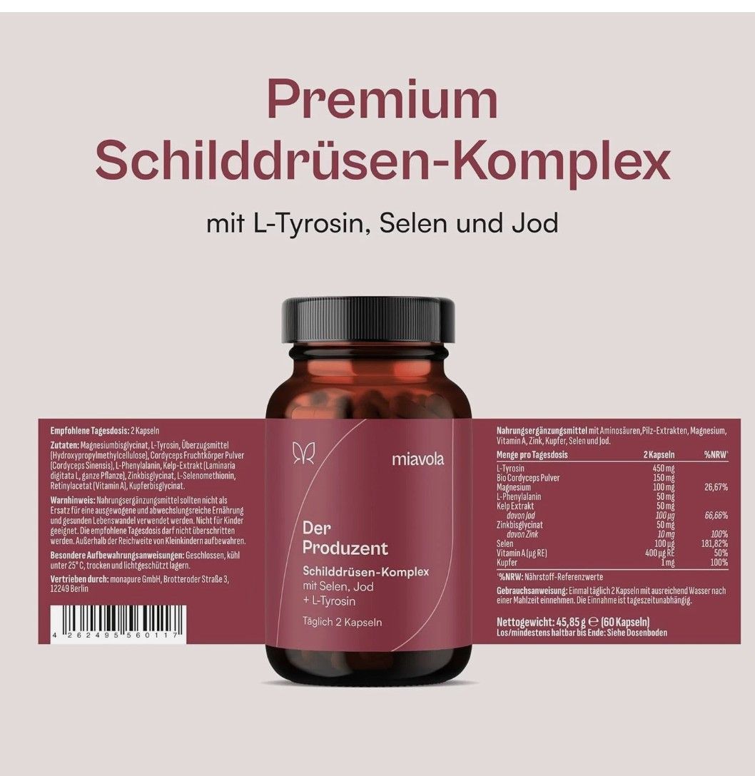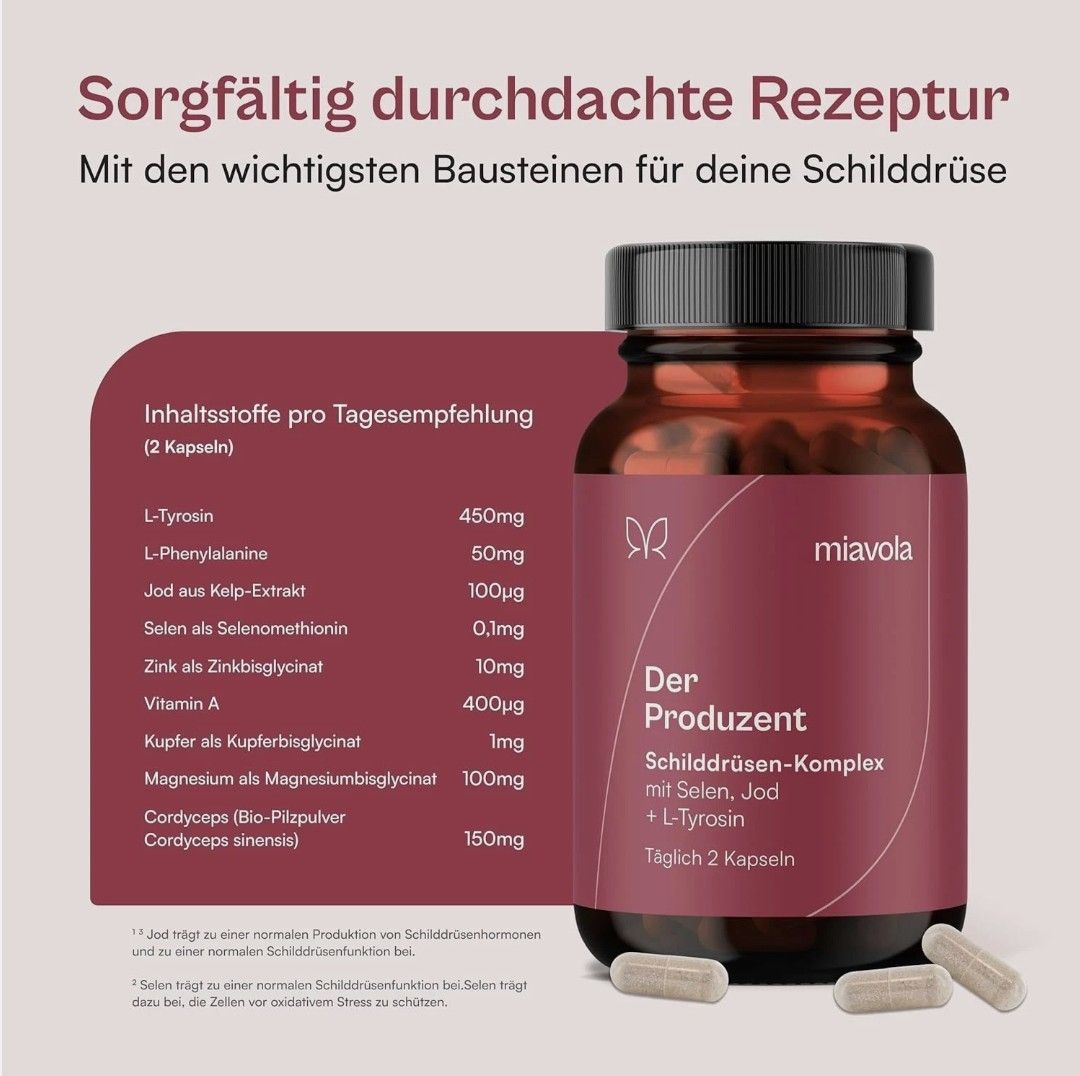 miavola der Produzent Schilddrüsen Komplex mit L-Tyrosin, Selen, Jod, Magnesium, Zink, Kupfer und Cordyceps - 60 Kapseln hochdosiert & vegan