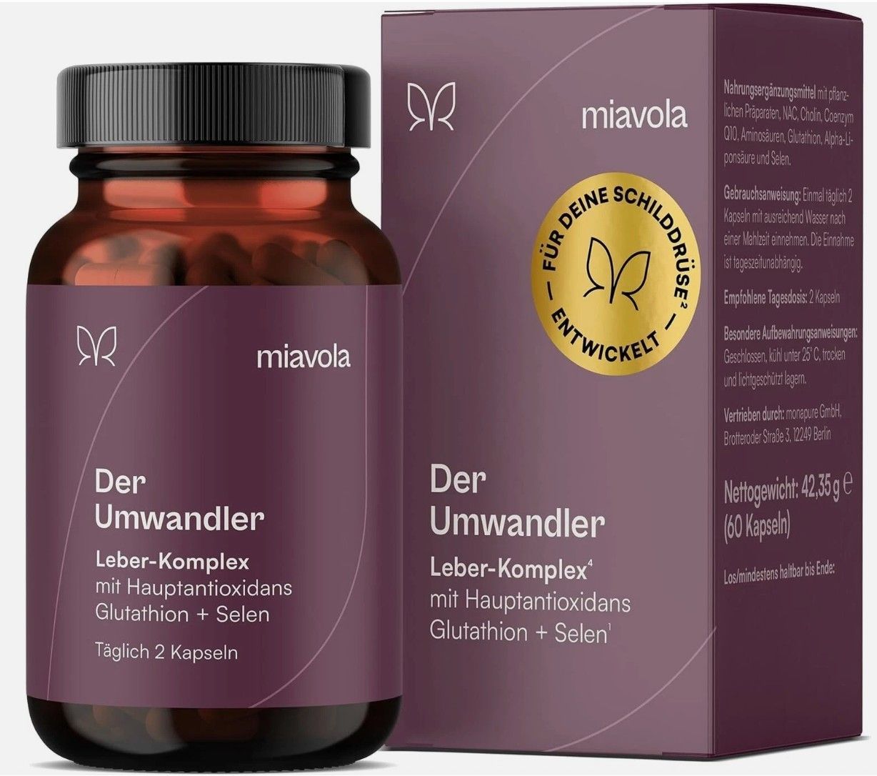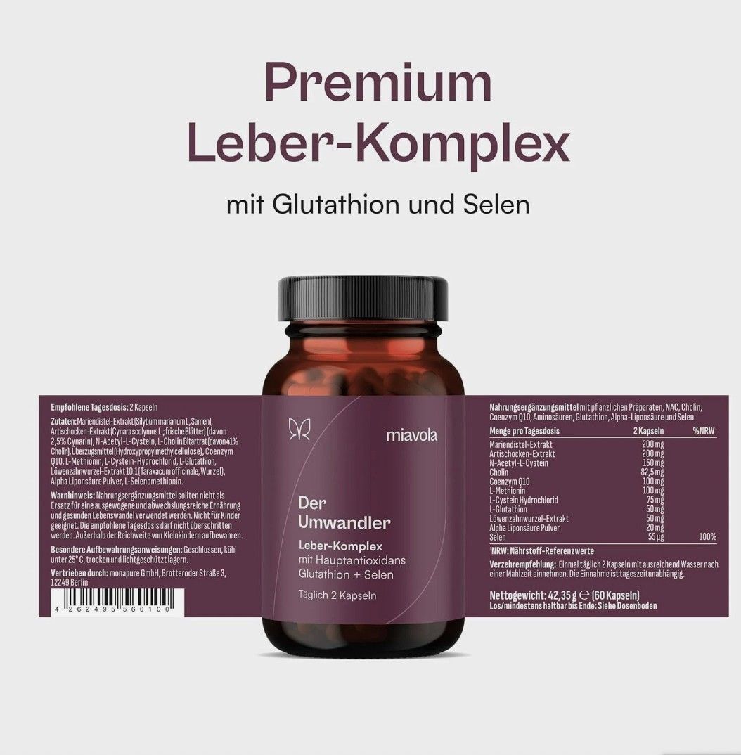 miavola der Umwandler Schilddrüsen & Leber Komplex mit Mariendistel, Artischocke, Cholin, Glutathion, Selen, NAC + weitere Aminosäuren - 60 Kapseln hochdosiert & vegan