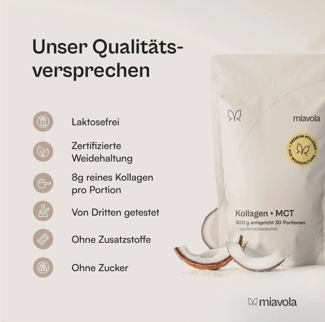 ? miavola Kollagen?MCT Pulver – 300?g Beutel Hochwertiges Kollagen?MCT?Pulver – made in Germany, geschmacksneutral & ohne Klümpchen