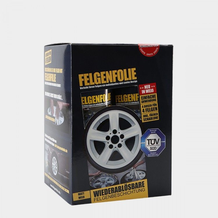 • mibenco Felgenfolie-Set 4×400 ml Weiß Glänzend – Sprühfolie für Felgen