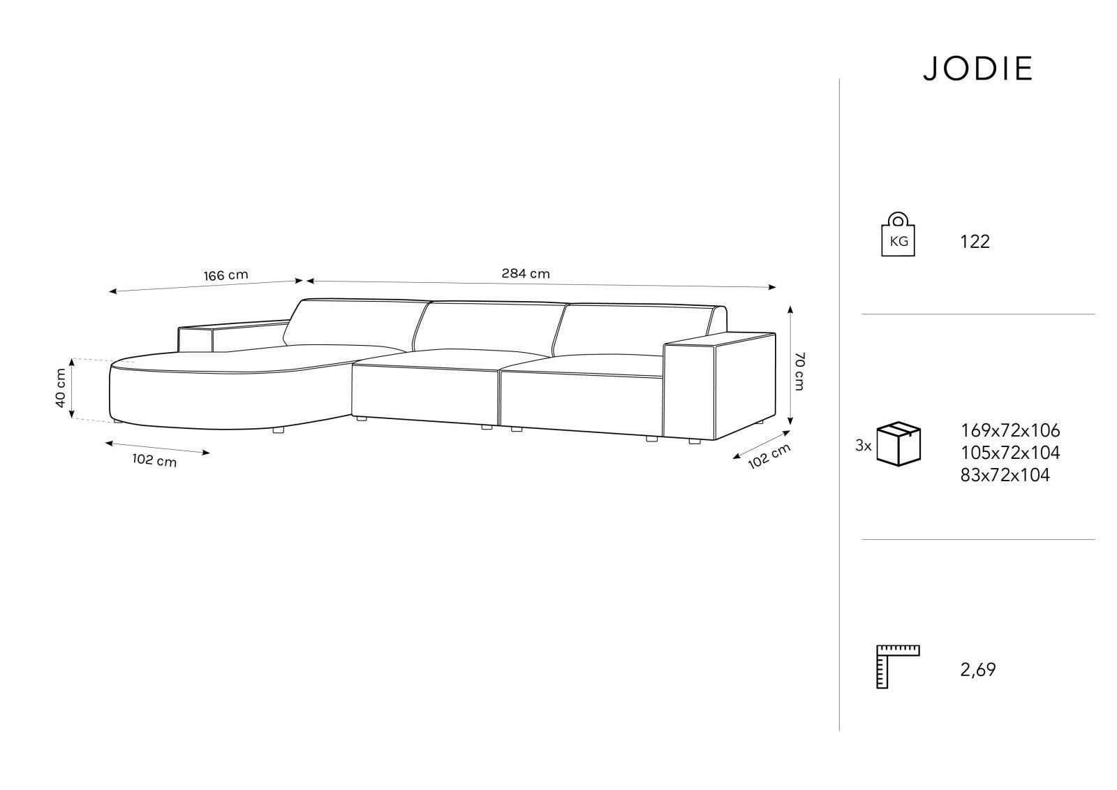 Micadoni 4-Sitzer Samtstoff Ecke links Sofa Jodie | Bezug Light Gr...