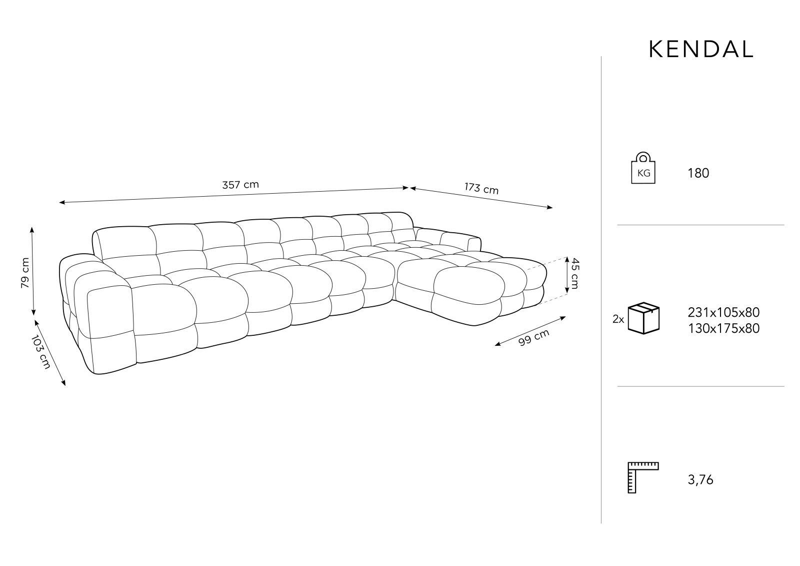 Micadoni 5-Sitzer Samtstoff Ecke rechts Sofa Kendal | Bezug Black | Beinfarbe Bl...