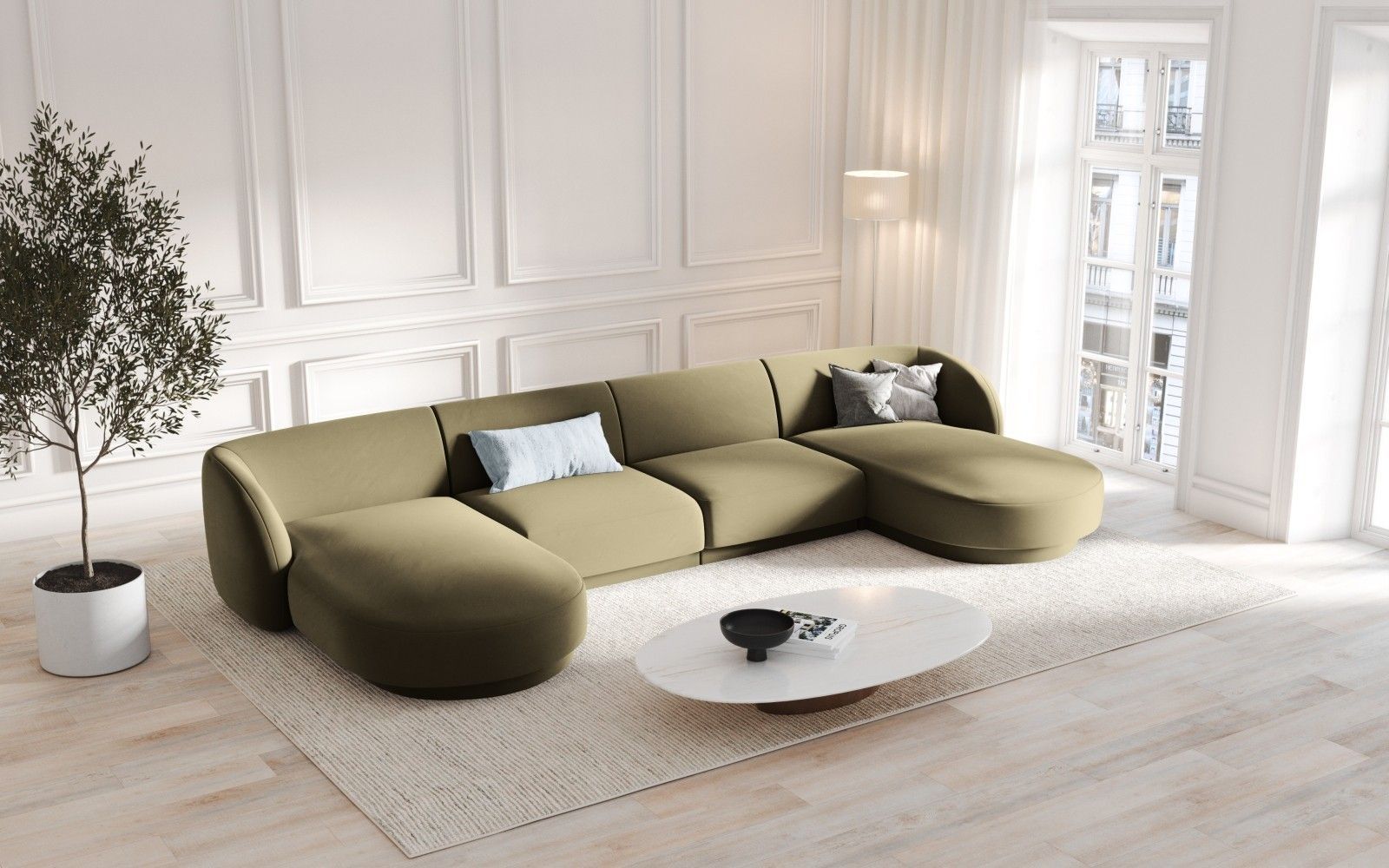 Micadoni 5-Sitzer Samtstoff Panorama Sofa Miley | Bezug Green | Beinfarbe Black ...