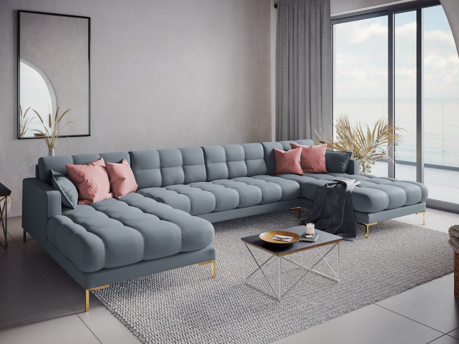 Micadoni 6-Sitzer Panorama Sofa Mamaia | Bezug Light Blue | Beinfarbe Gol...