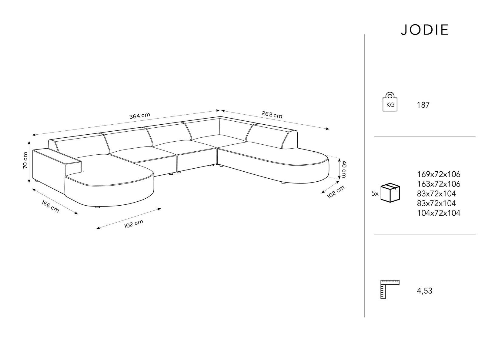 Micadoni 7-Sitzer Samtstoff Panorama Ecke rechts Sofa Jodie | Bezug Green | Bein...