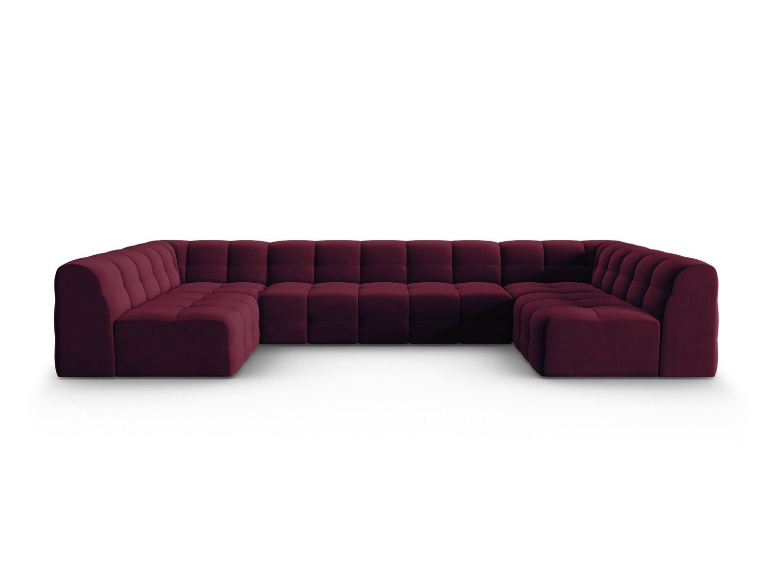 Micadoni 7-Sitzer Samtstoff Panorama Sofa Kendal | Bezug Purple | Beinfarbe Blac...