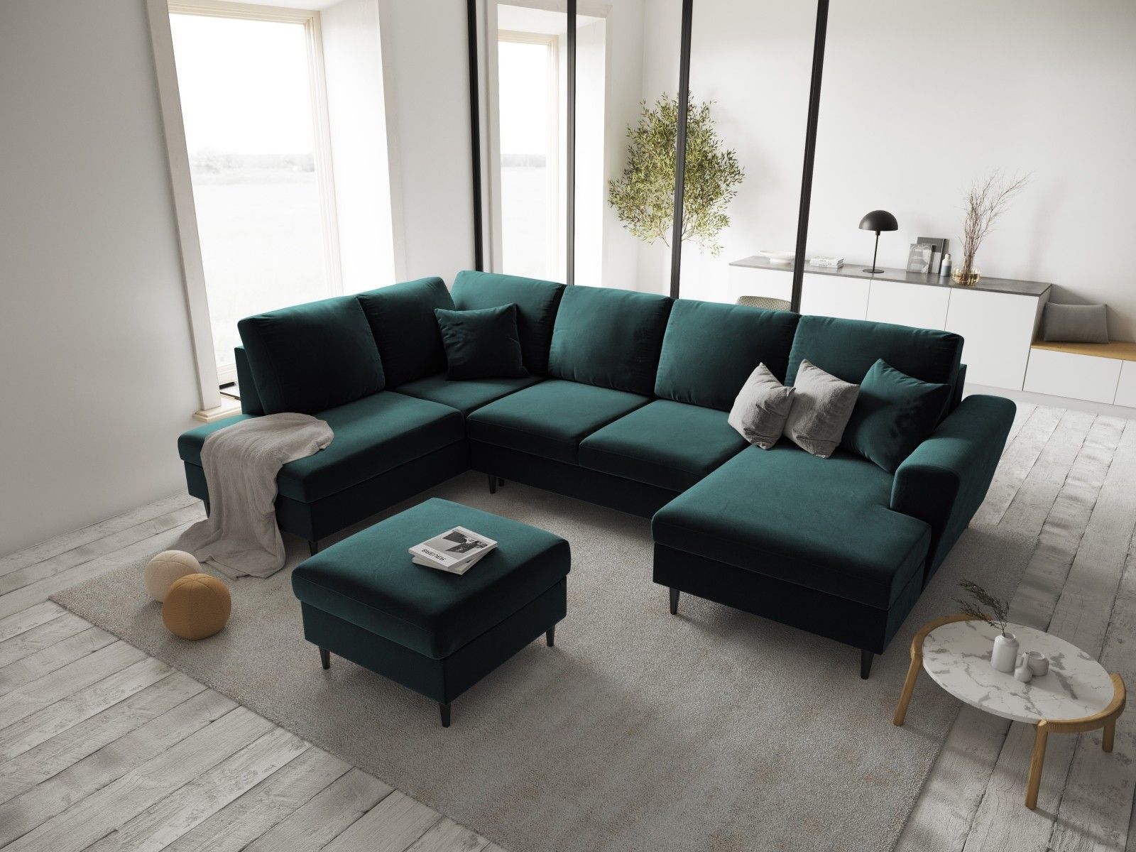 Micadoni 7-Sitzer Samtstoff Panorama Sofa Links mit Box und Schlaffunktion Mogha...