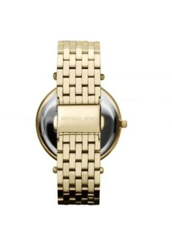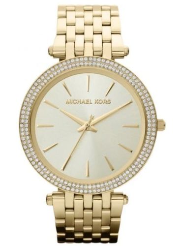 Diese wunderschöne Damenuhr Michael Kors MK3191 besticht durch eine glitzernde Lünette und ein rundes goldenes Zifferblatt. Das Zifferblatt ist mit rosa Stabindexen und schlanken goldenen Zeigern versehen. Die Uhr ist PVD-vergoldet und wird mit einem attraktiven goldenen Metallarmband befestigt. Ang