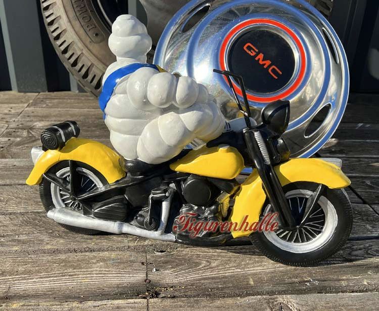 Michelin Männchen auf Motorrad als Werbefigur | Größe : ca. L 47 x H 35 x T 16 cm