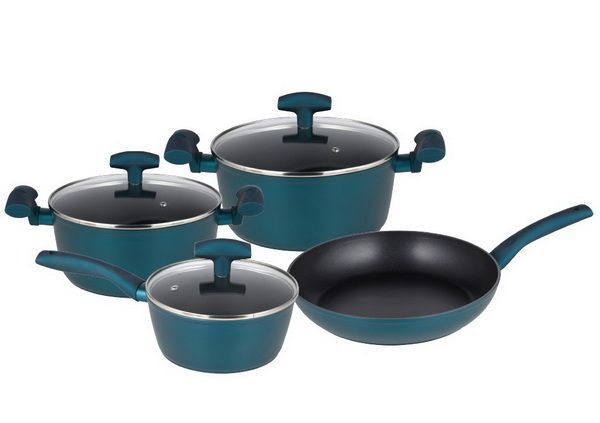 • Michelino Nora 7 teiliges Kochtopf-Set mit Glasdeckeln inkl. Pfannenschutz - Petrol