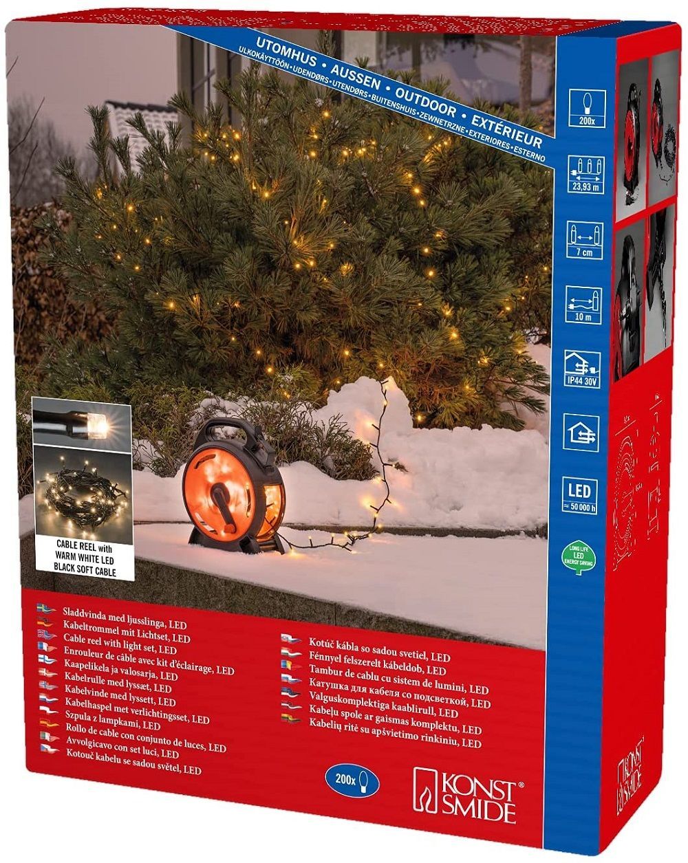 Konstsmide Micro LED Lichterkette 200er Warmweiß Kabelaufroller 30V 3,6W 3832-107