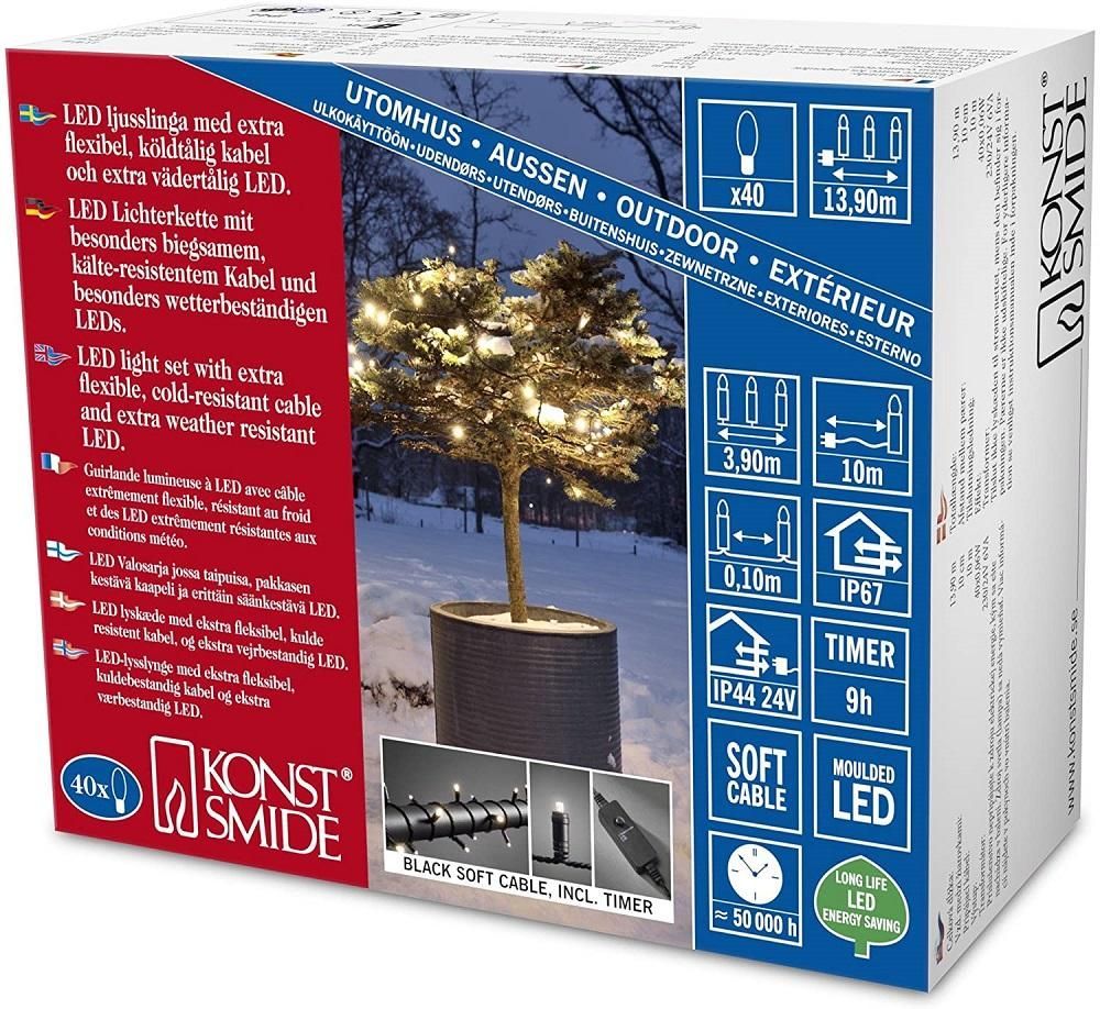 Konstsmide Micro LED Lichterkette 40er warmweiß / schwarz aussen 13,9m IP67 6630-117
