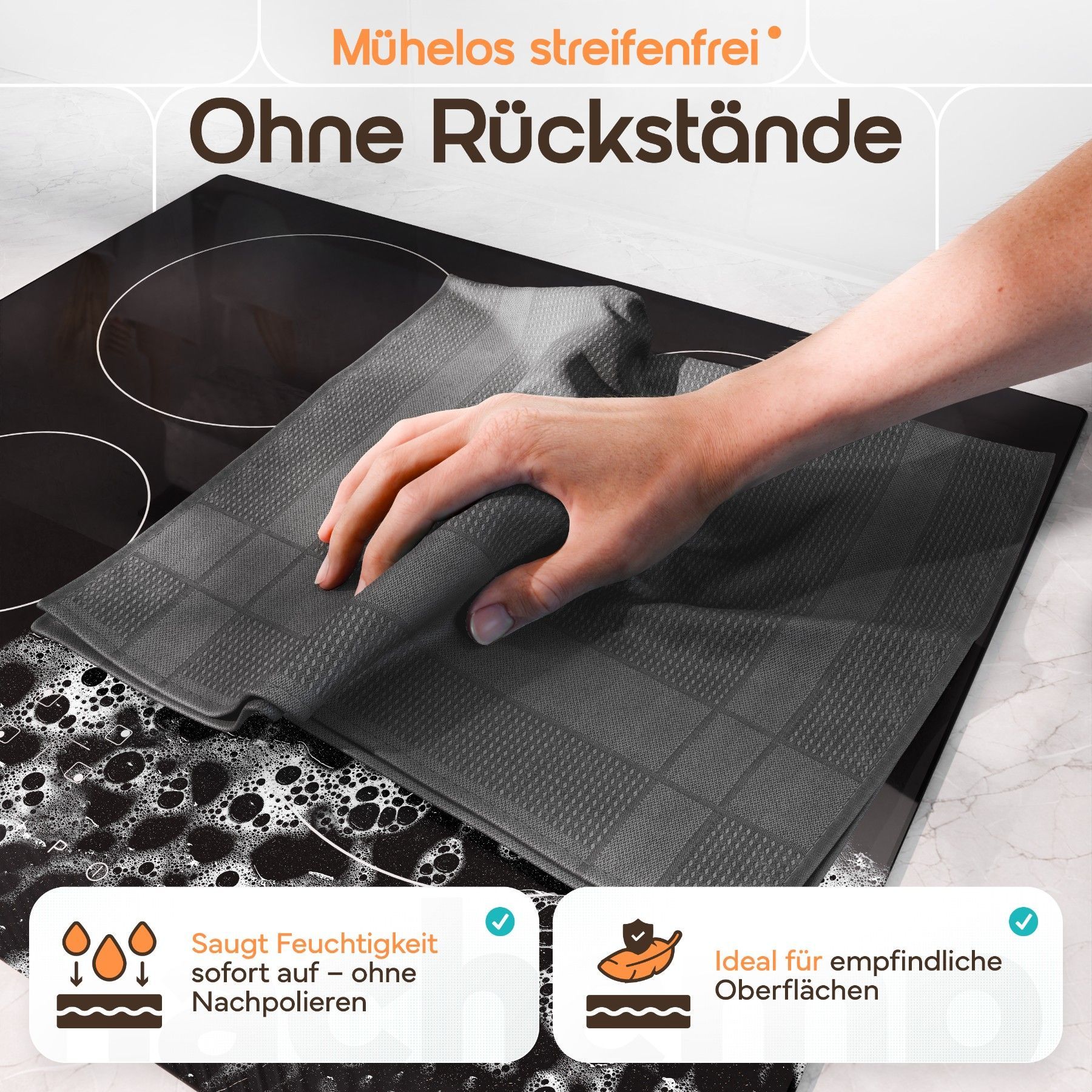 bis 95°C Waschbar, 68x42cm, Hochsaugend. Schnelltrocknend, Streifenfrei,
