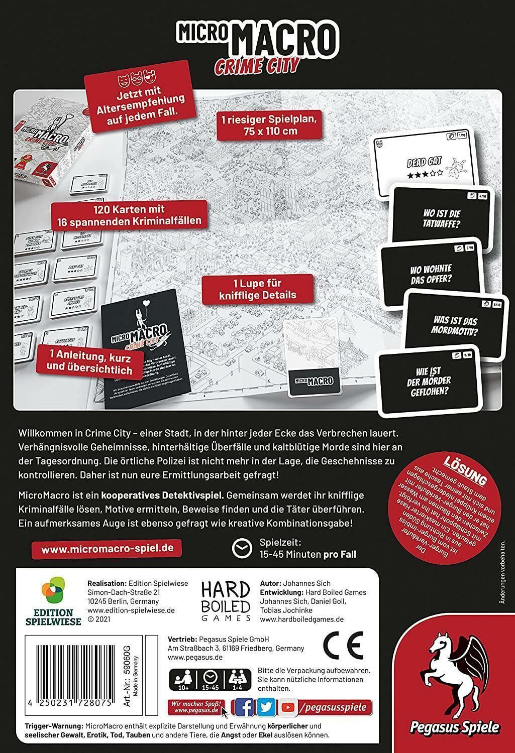 Pegasus MicroMacro 59060G Crime City Edition Spielwiese Spiel des Jahres 2021 Brettspiel