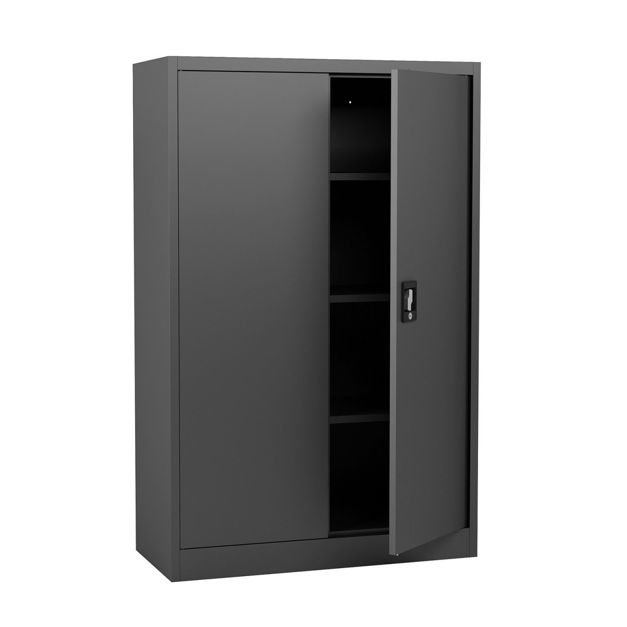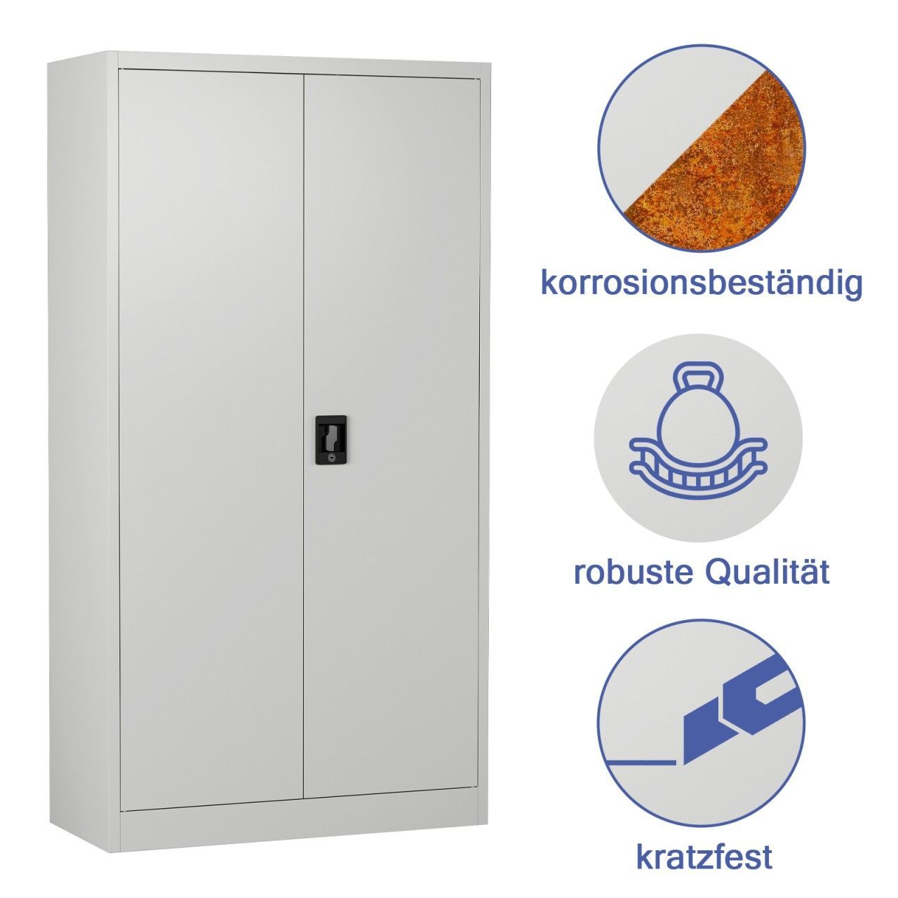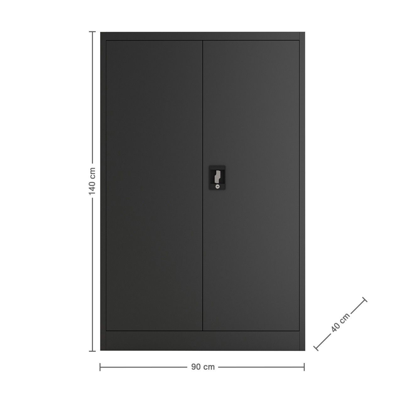 MIDORI® Aktenschrank Büroschrank Metallschrank Flügeltürenschrank Lagerschrank 3 Böden Schwarz Wir möchten Sie bei der Organisation und dem Schutz Ihrer Dokumente Unterstützen und bieten Ihnen hierzu hochwertige Aktenschränke an. Denn wir bieten Ihnen ein absolutes Raumwunder im Bereich der Büroschränke an. Somit können Sie Ihre Aktenordner und Ihr Büromaterial sicher und fachgerecht lagern und werden wieder Herr über die große Flut von Aktenbergen. Wir haben es uns zur Aufgabe gemacht, einen Aktenschrank zu produzieren, der das moderne Design mit Qualität und Funktionalität vereint, aber auch Sicherheit und Schutz für Ihre persönlichen Daten liefert. Und genau dies ist uns mit unserem hochwertigen Aktenschrank geglückt. Hochwertiger Stahl für Ihre Sicherheit Wir stellen unseren Aktenschrank zu 100% aus robusten und widerstandsfähigem Stahl her. Wir haben uns aus mehreren Gründen für dieses Material entschieden. Stahl ist für seine Langlebigkeit und robuste Beschaffenheit bekannt. Somit können wir Ihnen garantieren, dass Sie lange Freude an Ihrem neuen Stahlschrank haben werden. Um diese Eigenschaften noch weiter zu verbessern, wird der Aktenschrank pulverbeschichtet. Diese Beschichtung sorgt dafür, dass der Büroschrank nicht nur gut aussieht, sondern auch kratzfest und korrosionsbeständig wird. Mit der hochwertigen Pulverbeschichtung, brauchen sich unsere stabilen Aktenschränke gegenüber anderen Metallschränken nicht verstecken. Stabile Flügeltüren mit hochwertigem Sicherheits-Zylinderschloss Ihre Aktenordner enthalten wichtige Dokumente und vertrauliche Dokumente, die vor der Einsicht Unbefugter geschützt werden müssen? Dann benötigen Sie einen Aktenschrank, auf den Sie sich verlassen können und der Ihnen die nötige Sicherheit bieten kann. Aus diesem Grund haben wir unsere Metallschränke mit einem Sicherheits-Zylinderschloss ausgestattet. Das Schloss mit dem Drehgriff können Sie ganz einfach mit einem Schlüssel verschließen und brauchen sich keine Sorgen mehr um Ihre Akten machen. Aber nicht nur das Schloss ist bei unseren Aktenschränken auf Sicherheit ausgelegt, sondern auch die Flügeltüren. Die Türen unseres Stahlschrankes wurden verstärkt und können so jedem Unbefugten die Stirn bieten. Ihre vertraulichen Daten sind in unserm Aktenschrank absolut sicher. Bestimmen Sie die Position Ihrer Einlegeböden selbst Auf der Suche nach einem Metallschrank, der Ihnen absolute Flexibilität verschafft und noch dazu einen guten Eindruck in Ihrem Büro macht? Dann entscheiden Sie sich für unseren hochwertigen Aktenschrank mit Flügeltüren und individuell höhenverstellbaren Einlegeböden. Sie bestimmen die Fachhöhe ganz einfach selbst und schaffen sich so ausreichend Platz für alles, was Ihnen im Büro wichtig ist. Ob Aktenordner oder sonstiges Büromaterial, alles was Sie sicher aufbewahren möchten, wird seinen festen Platz im neuen Aktenschrank finden. Durch die individuell einsetzbaren Einlegeböden, wird Sie eine neue Lieferung an Büromaterial so schnell nicht mehr ins Schwitzen bringen. Unser Aktenschrank ist so flexibel einsetzbar, dass Ihnen in seinem Einsatz keine Grenzen gesetzt werden. Setzen Sie unseren Aktenschrank doch einfach als Universalschrank zum Beispiel in der Werkstatt, dem Hobbyraum, dem Keller, dem Dachboden, der Garage oder dem Arbeitszimmer und Lager ein. Unser hochwertiger Stahlschrank ist überall für Sie da und nicht nur in Ihrem Büro ein hilfreicher Helfer. Einfache Montage und leichte Reinigung Eine unkomplizierte Montage ist uns bei all unseren Produkten sehr wichtig. Auch bei unserem hochwertigen Aktenschrank haben wir auf eine einfache und unkomplizierte Montage wert gelegt. Sie brauchen nur die detaillierte und genaue Aufbauanleitung zu befolgen und werden überrascht sein, wie einfach und schnell Ihr neuer Aktenschrank an Ort und Stelle steht. Die stabile Qualität ermöglicht einen sicheren und festen Stand ohne wackeln oder kippen. Durch die Herstellung mit hochwertigem Stahl, können wir Ihnen die beste Qualität und Sicherheit bieten. Was Sie allerdings noch überzeugen wird, ist die einfache und unkomplizierte Reinigung des Aktenschrankes. Alles, was Sie zur Reinigung benötigen, ist ein nasser Lappen. Sie benötigen hierfür keine speziellen Mittel oder besonders schonende Reinigungsmittel. Wischen Sie die Einlegeböden und den Korpus ganz einfach ab und wenn Sie möchten, können Sie zum Trocknen des Stahlschrankes einen Mikrofaserlappen verwenden. Und schon ist die Reinigung erledigt. Technische Daten Marke: Midori Material: Stahl Materialstärke: 0,55 mm Beschichtung: pulverbeschichtet Farbe: Schwarz Ausführung: Aktenschrank halbhoch Anzahl der Türen: 2 Anzahl der Einlegeböden: 3 Maße (B x T x H): 90 x 40 x 140 cm Maße der Einlegeböden (B x T x H): 86,9 x 36 x 2 cm Belastbarkeit pro Boden: 30 kg Gewicht: 28 kg Türen: Flügeltüren mit geräuschdämpfenden Gummipuffern Öffnungswinkel der Türen: 130° Verschlussart: Drehgriff mit Sicherheits-Zylinderschloss Anzahl der Schlüssel: 2