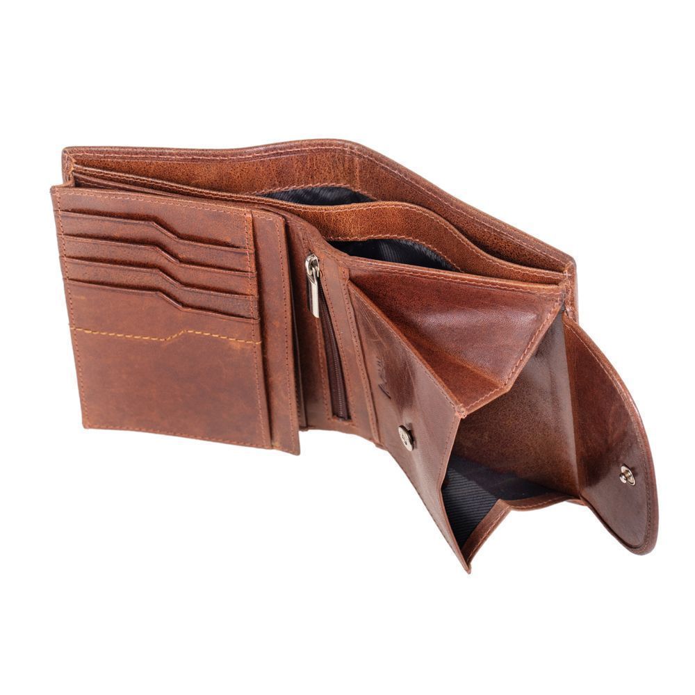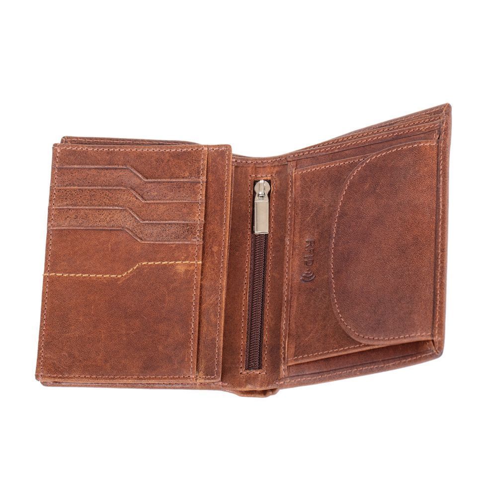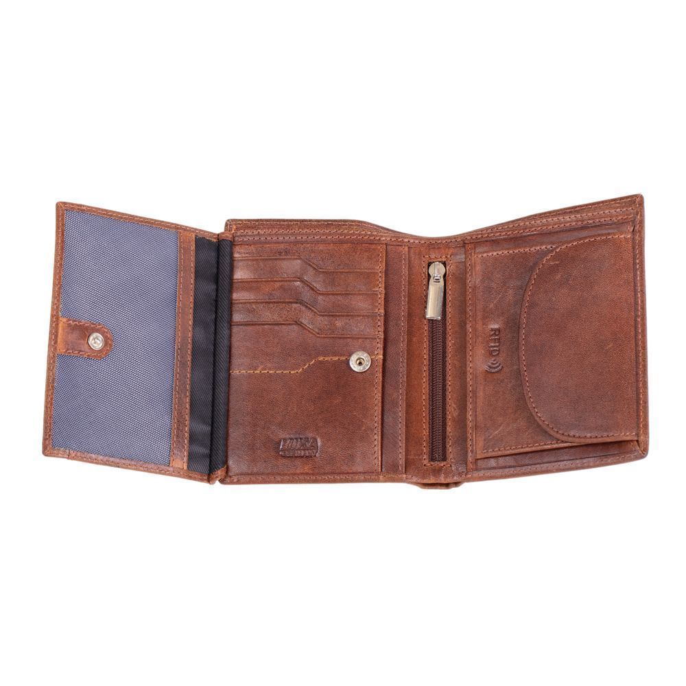 MIKA Geldbörse im Hochformat RFID Geldscheintasche Kombibörse Leder braun 42221