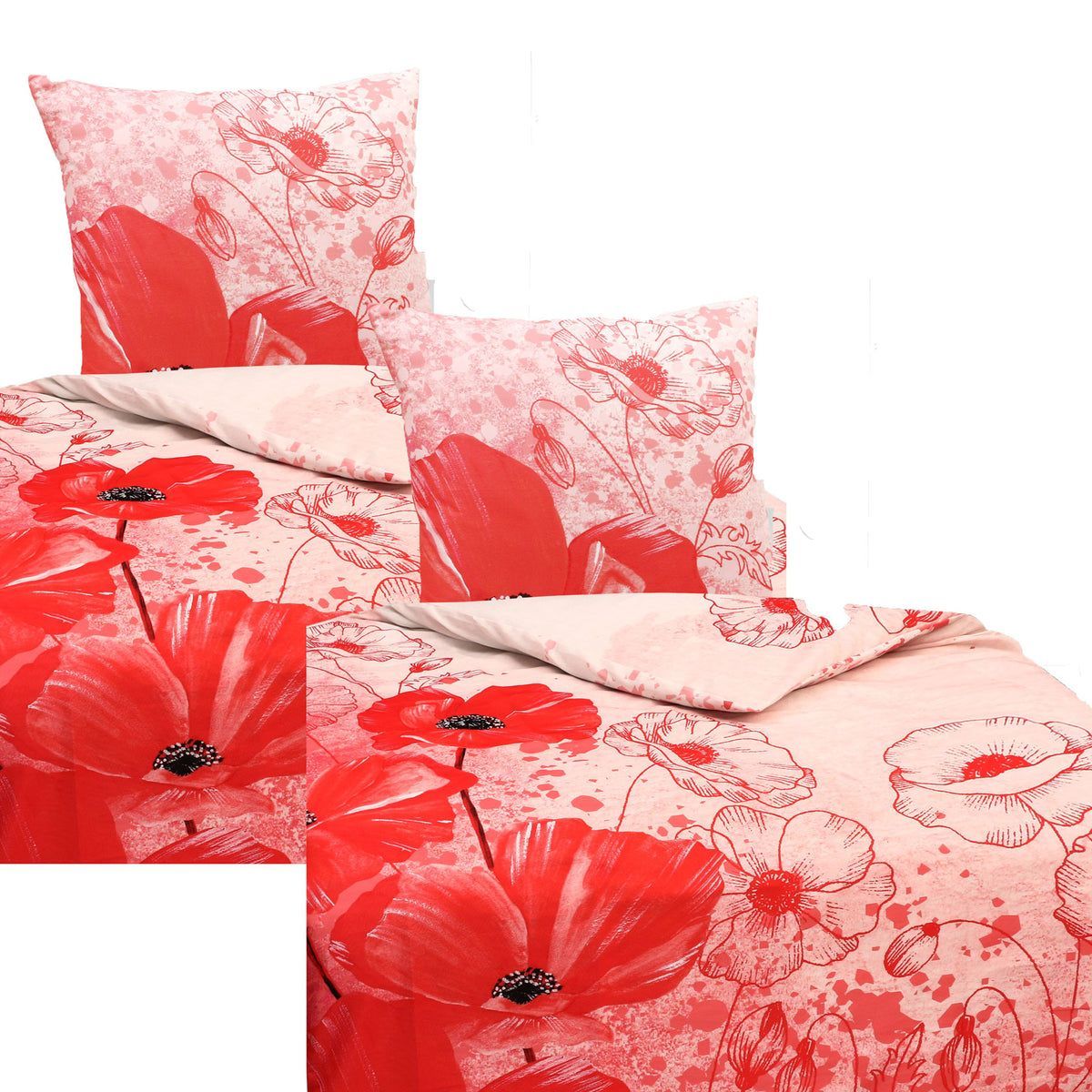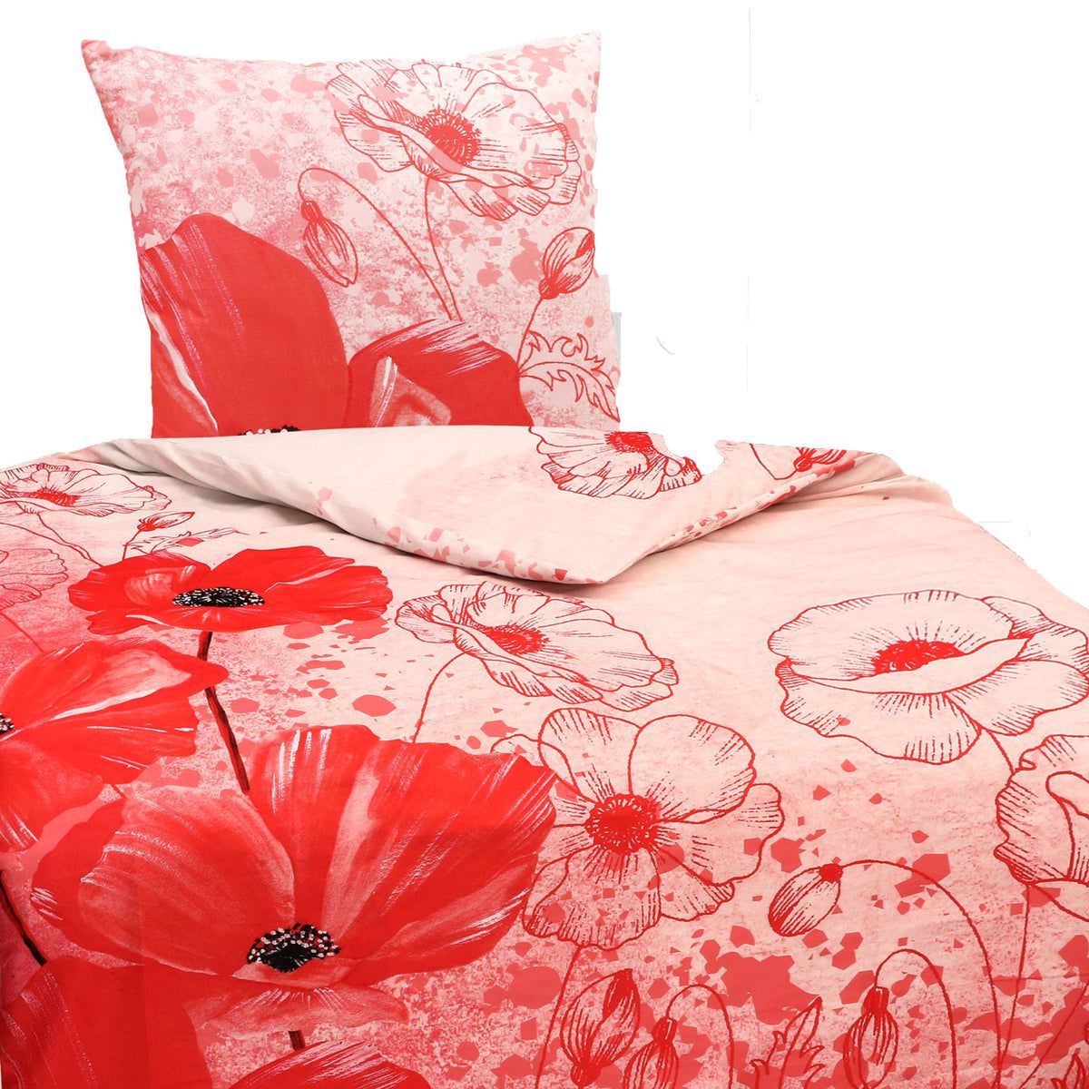 Mikrofaser Satin Bettwäsche Mohnblumen 135x200 80x80 Set 2tlg. 4tlg. Hochwertig Rot