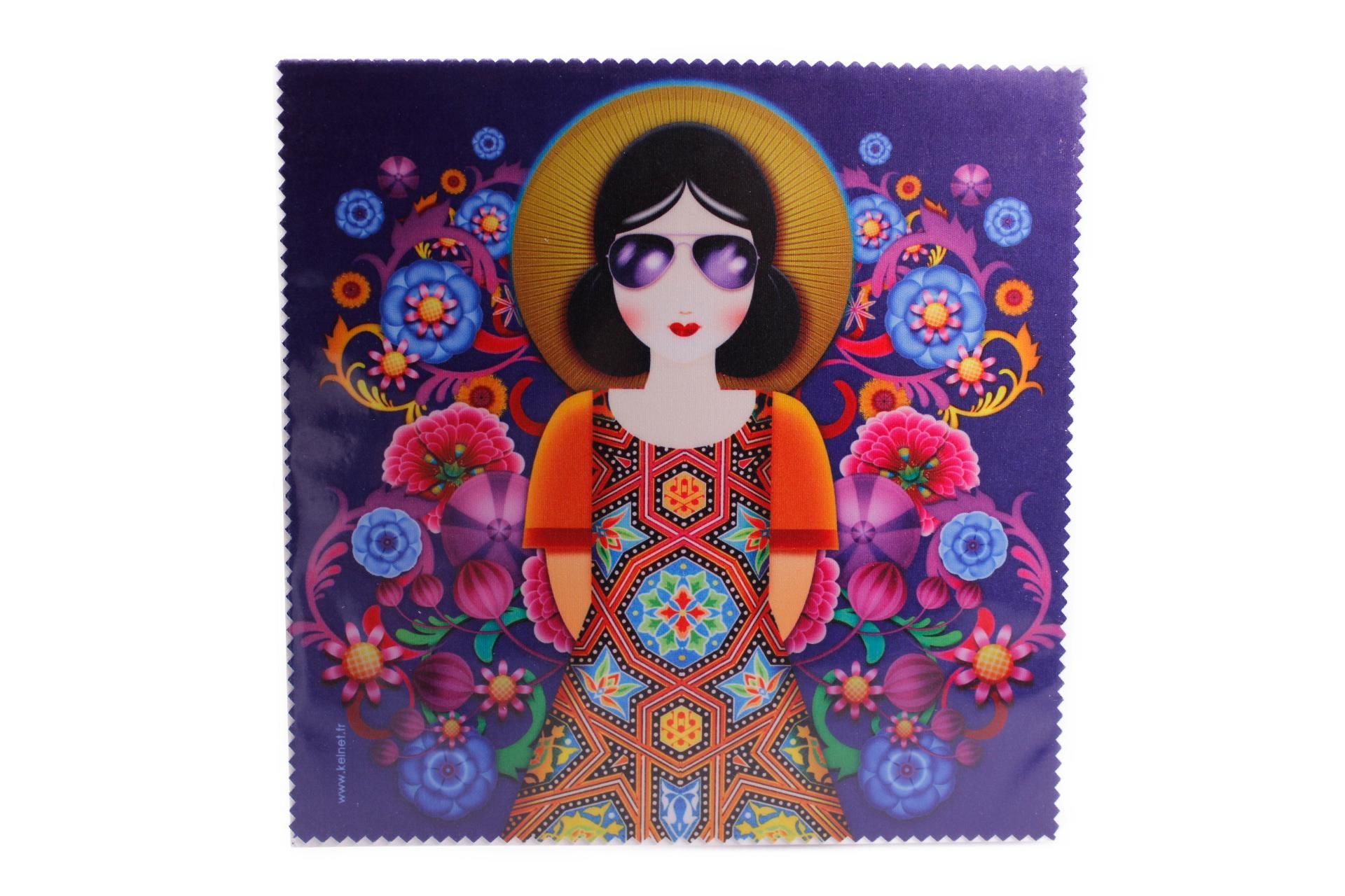 Mikrofasertuch "Frau mit Hut/ Blumen lila" Größe 18,5 * 18,5 cm von La Kelnet