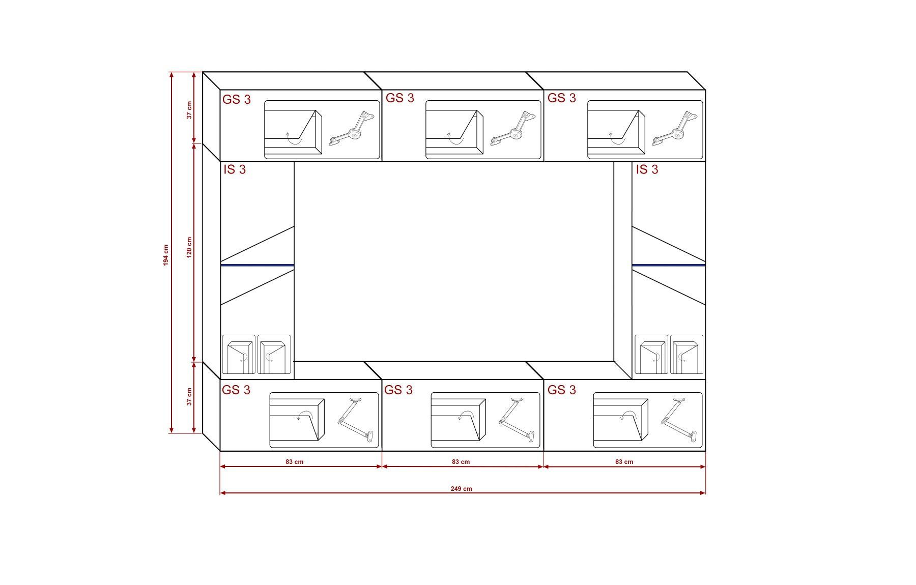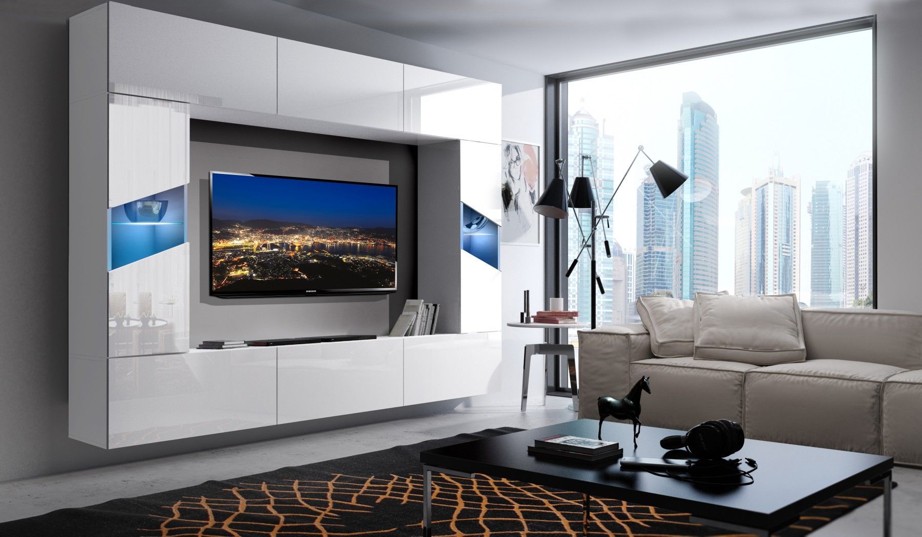 Milano S8-HG-W-2-1 Möbel für Wohnzimmer Wohnwand Mediawand Schrankwand Wohnschrank