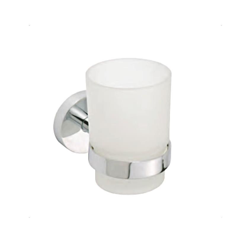 Milchglas-Zahnbürstenbecher inkl. Metall-Wandbefestigung, Chrom
