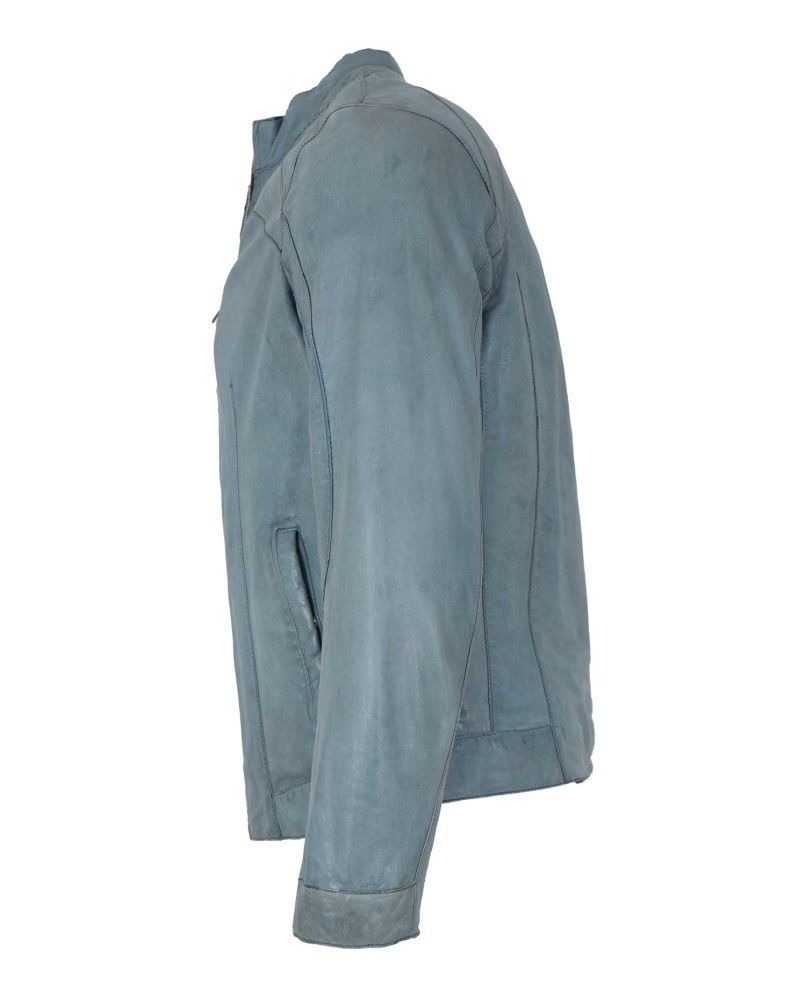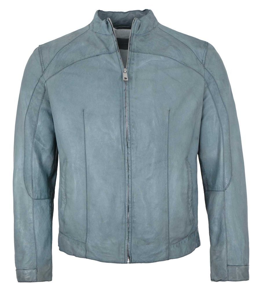 Milestone - Herren Lederjacke Lammnappa jeans blau