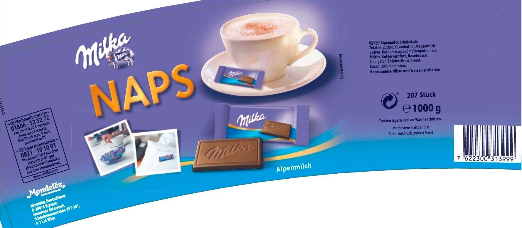 Milka Naps Alpenmilch 1 kg Dose (ca. 207 Stück)