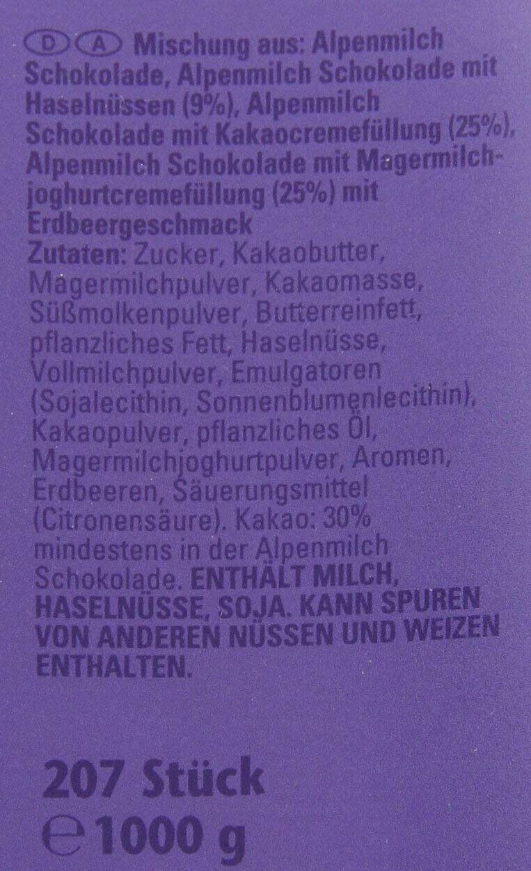 Milka Naps Mix Mini Schokoladentäfelchen Alpenmilch Erdbeer Haselnuss 1 kg Dose