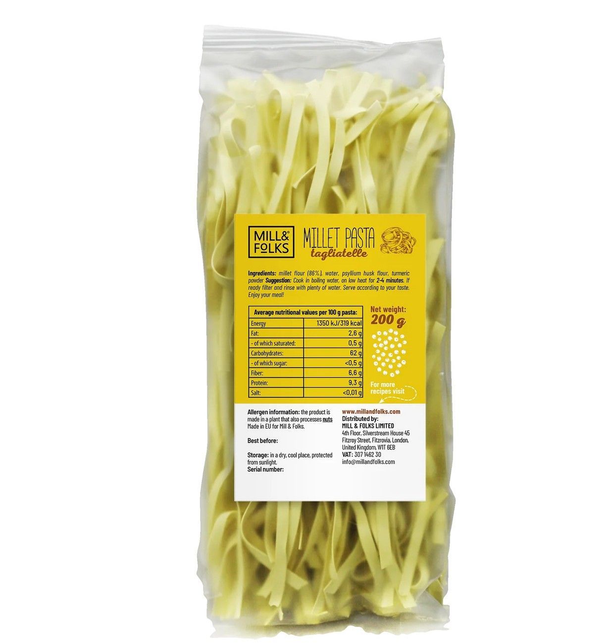 Mill & Folks Hirse Tagliatelle mit Kurkuma 200g / glutenfrei / vegan