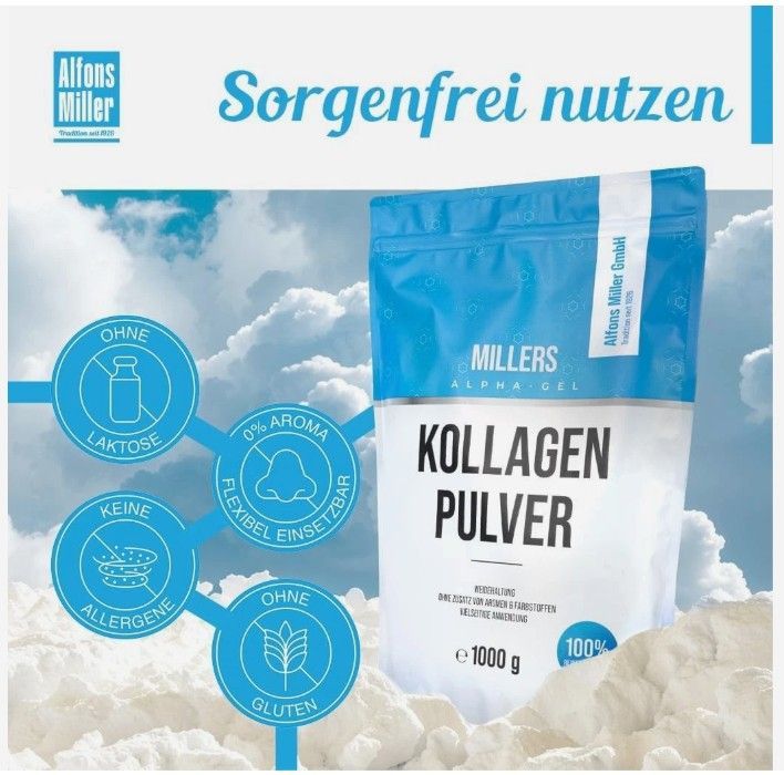 Millers Kollagen Pulver 1kg-Reines Collagen Peptid-Geschmacksneutral, hne Zusätz