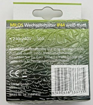 ChiliTec MILOS Wechsel-Schalter IP44 250V / 10A, inkl. Rahmen, UP, weiß matt