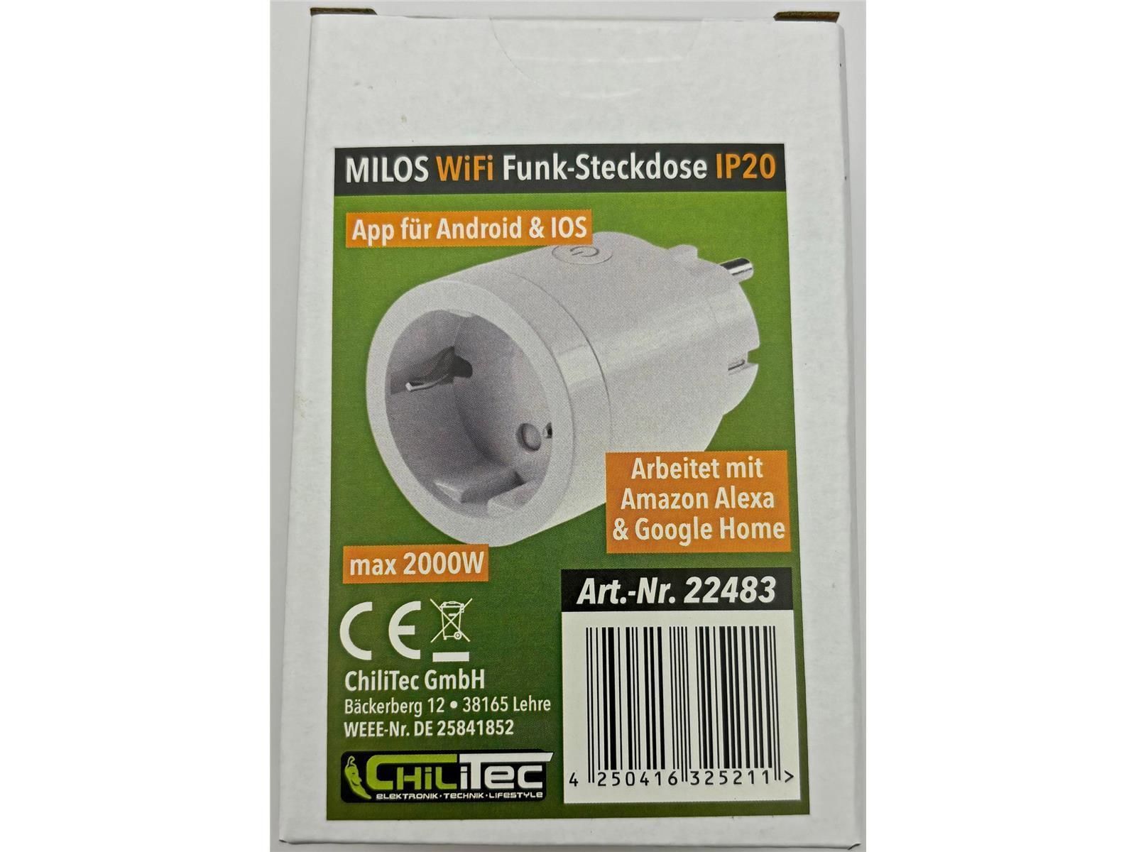 ChiliTec MILOS WiFi AP Funk-Steckdose Android + iOS- App, lexa/Google tauglich